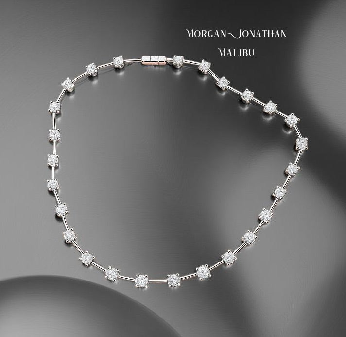 FLOATING STARS. Single Line Natural Diamond Bar Necklace 8.00 Carats 18KT Gold.