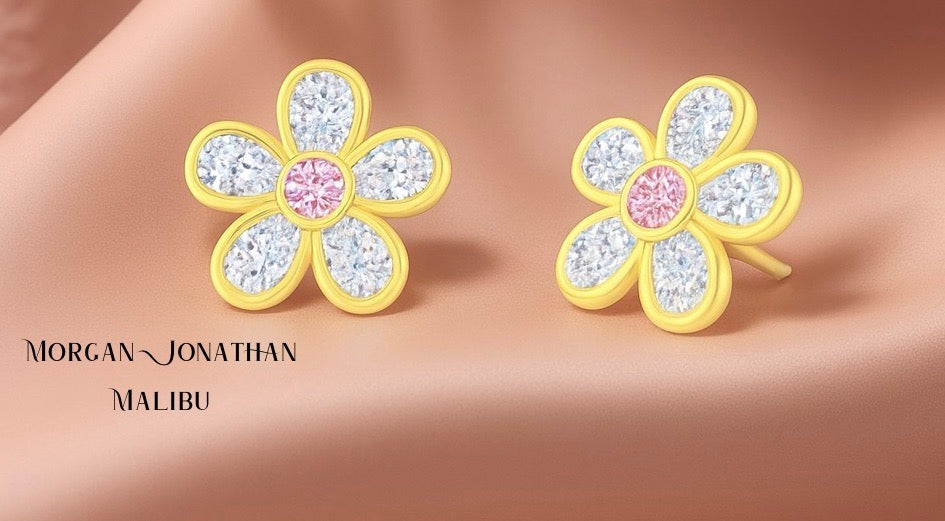 The BLOOM Signature Collection 2.50 Carat Flower Design Pear Shape Diamond Earring 18Kt Yellow Gold