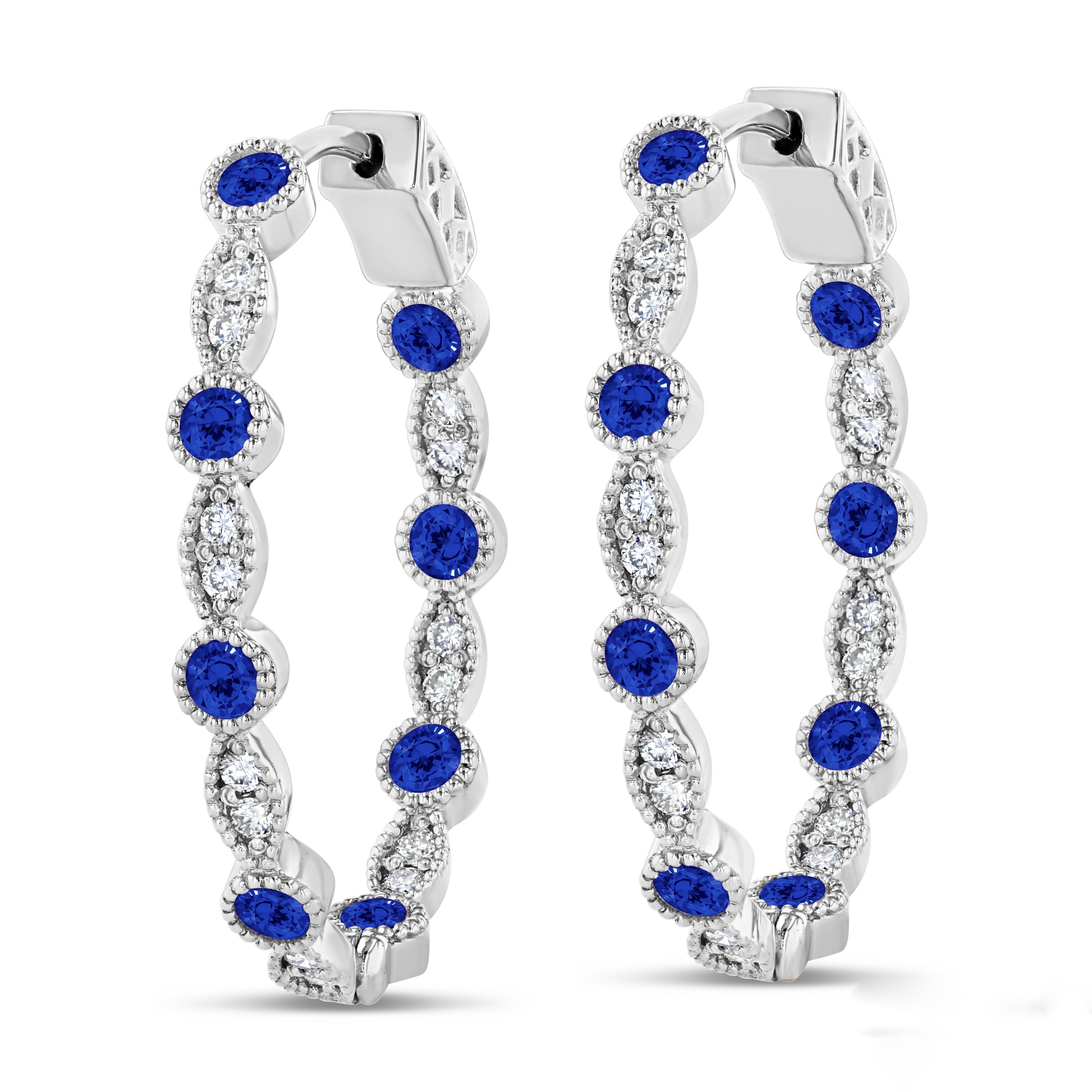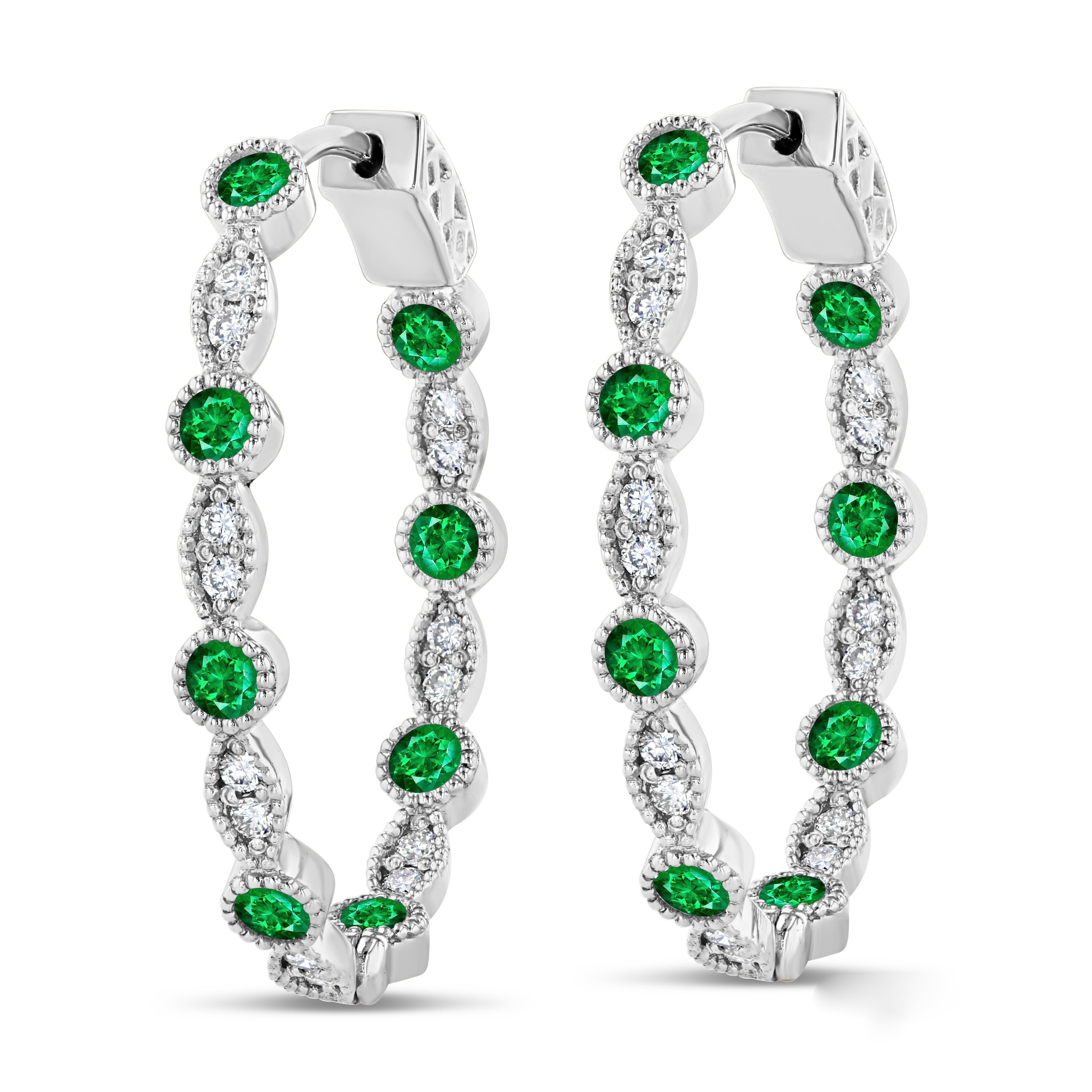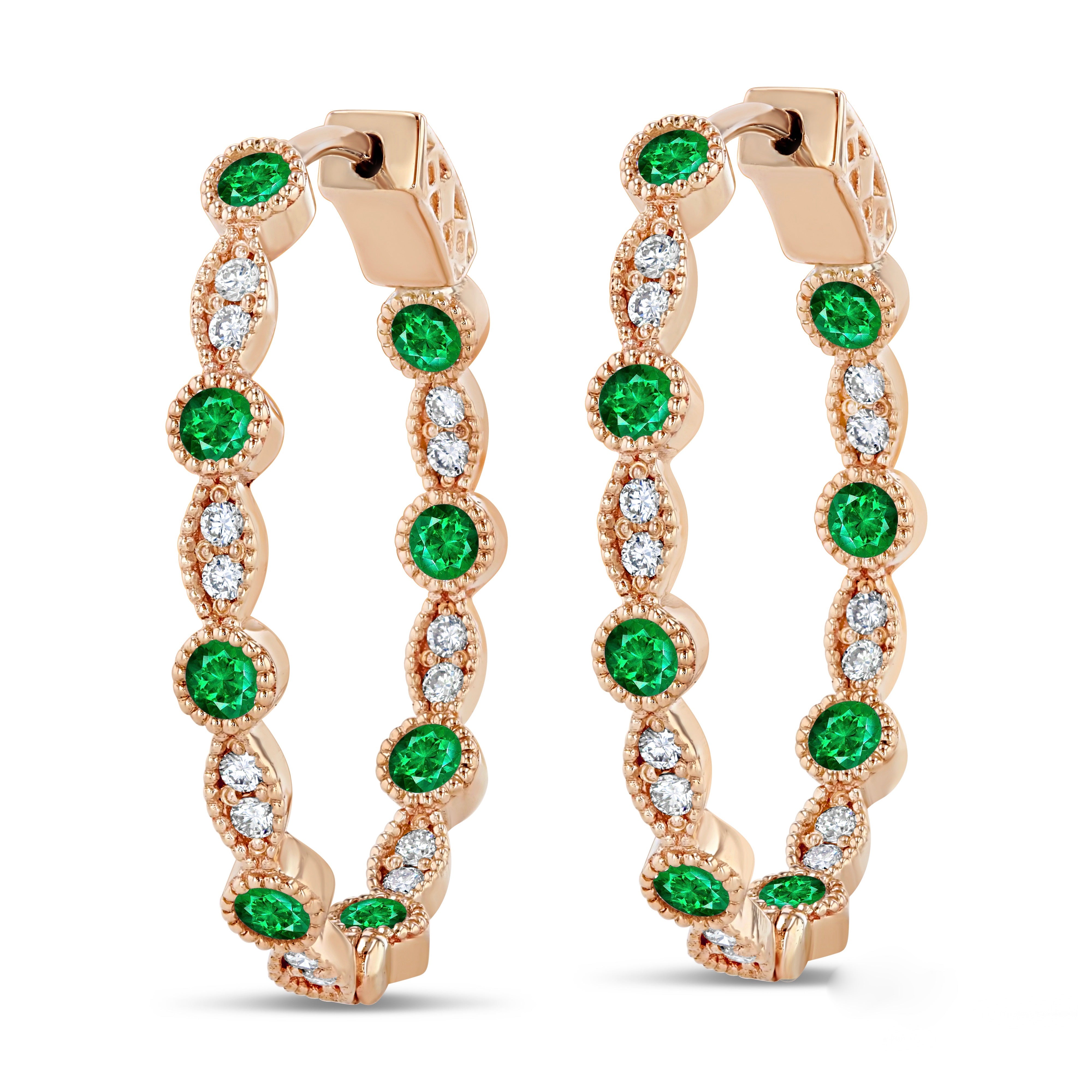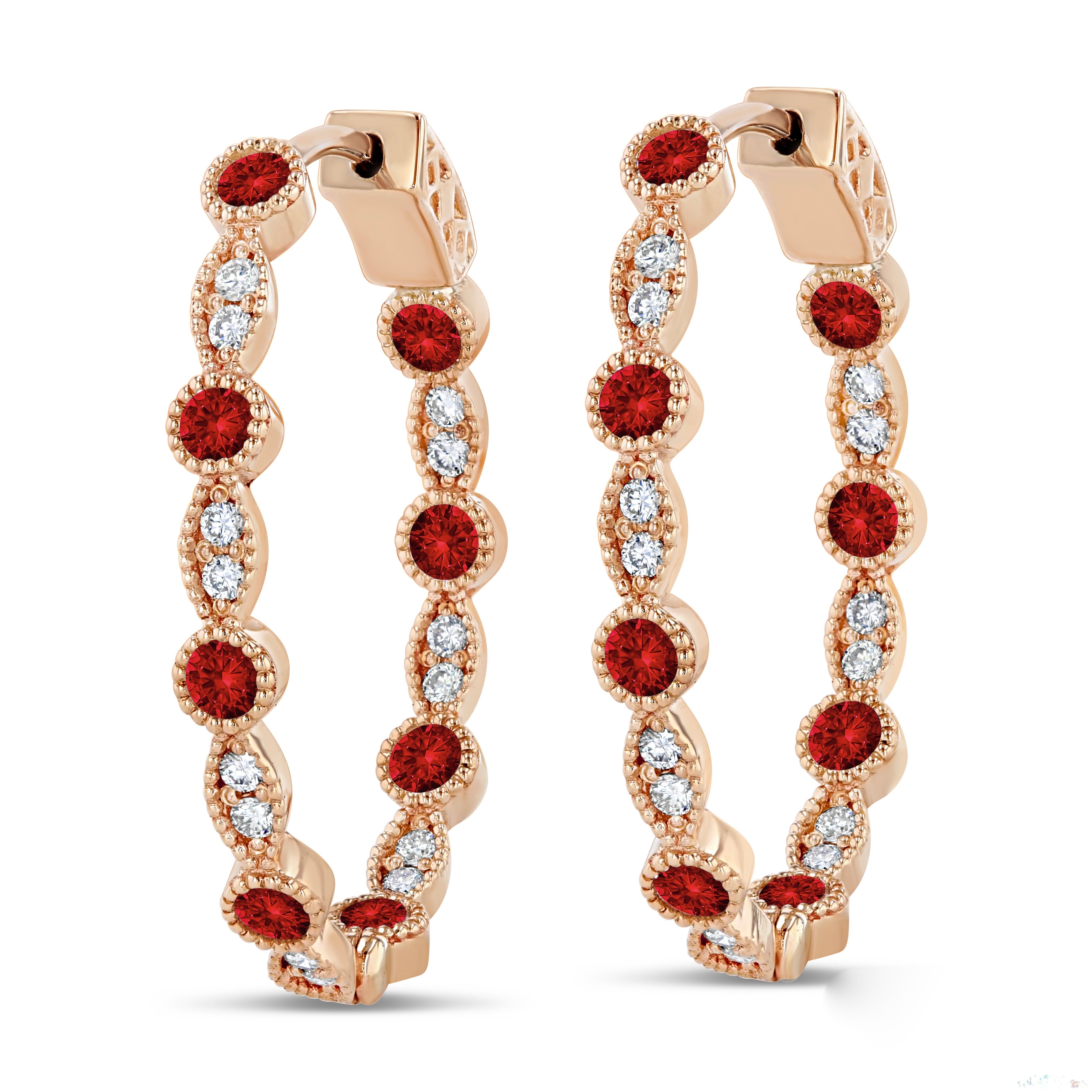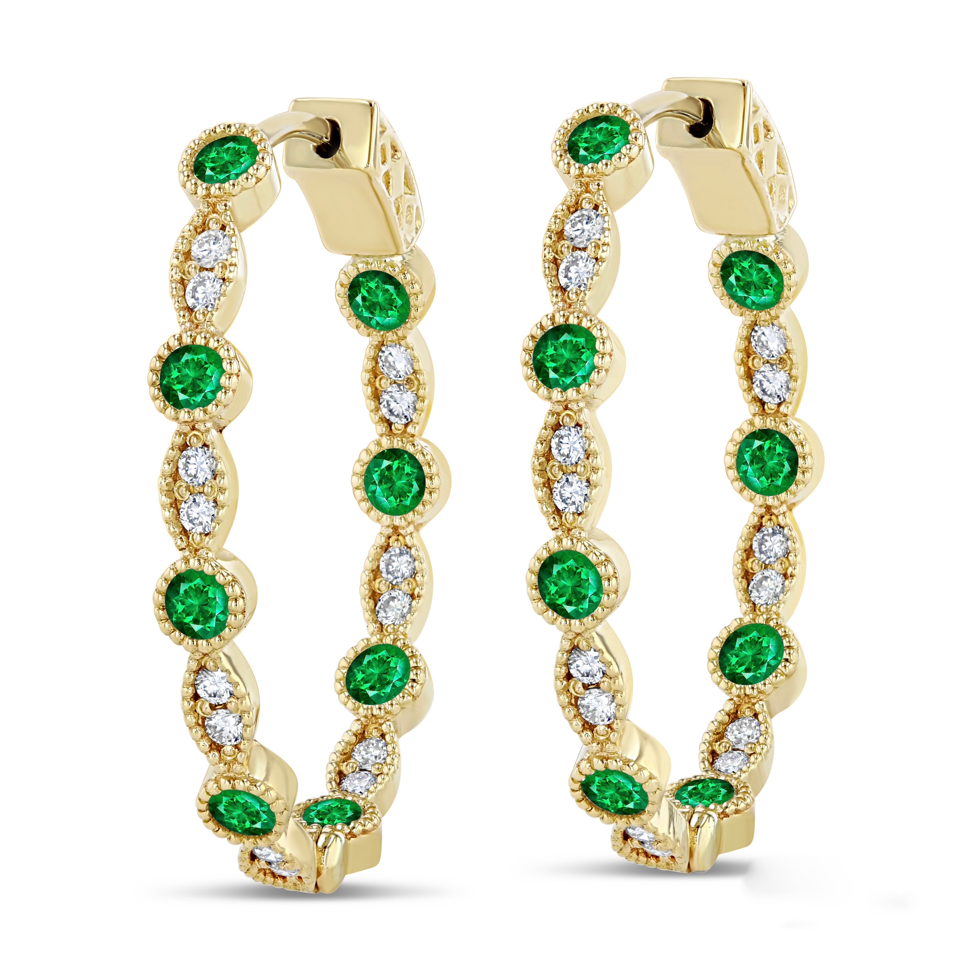 AARYN. INSIDE OUT DIAMOND AND COLOR STONE HOOP EARRNGS 14KT GOLD