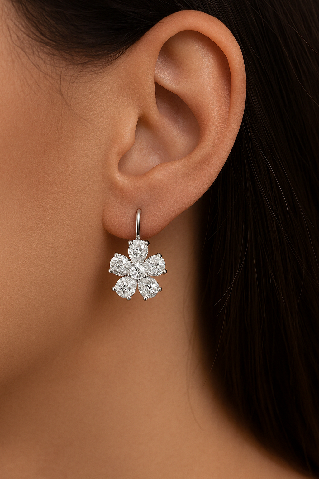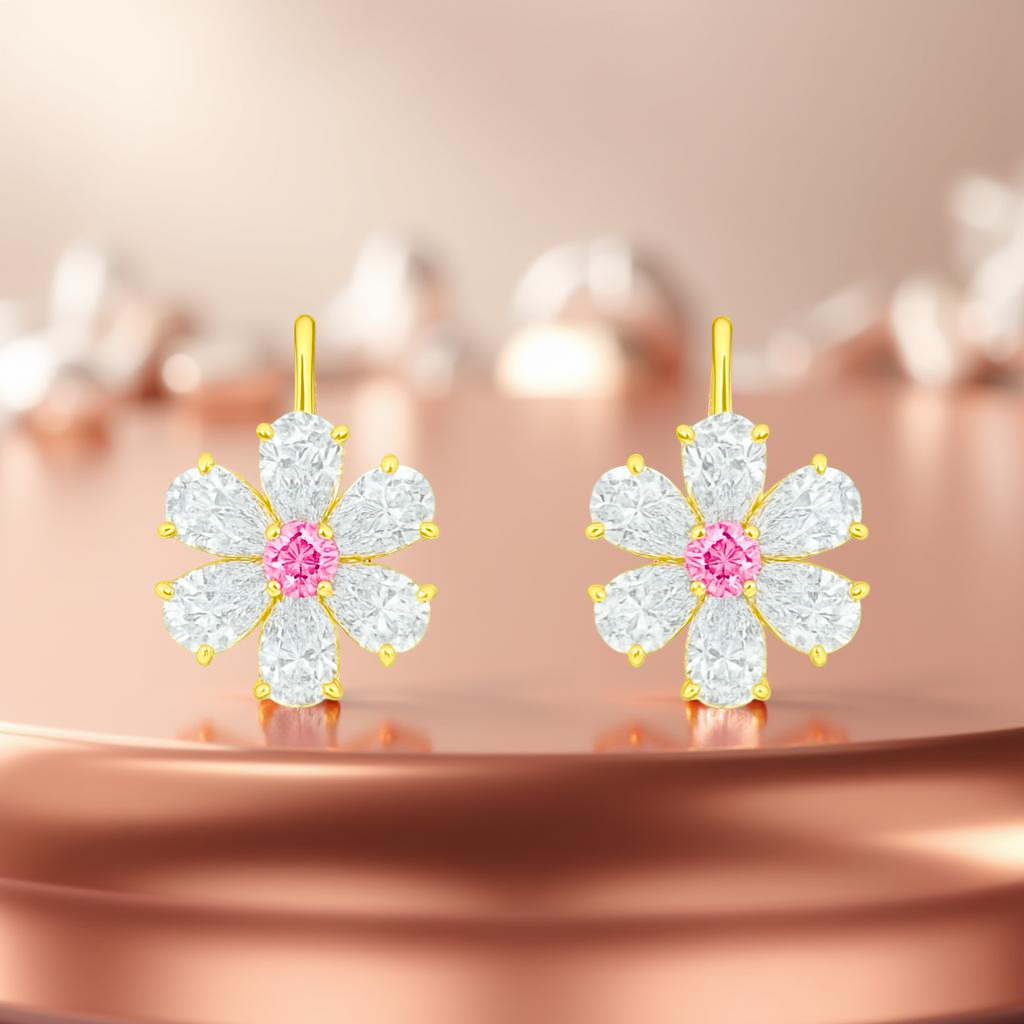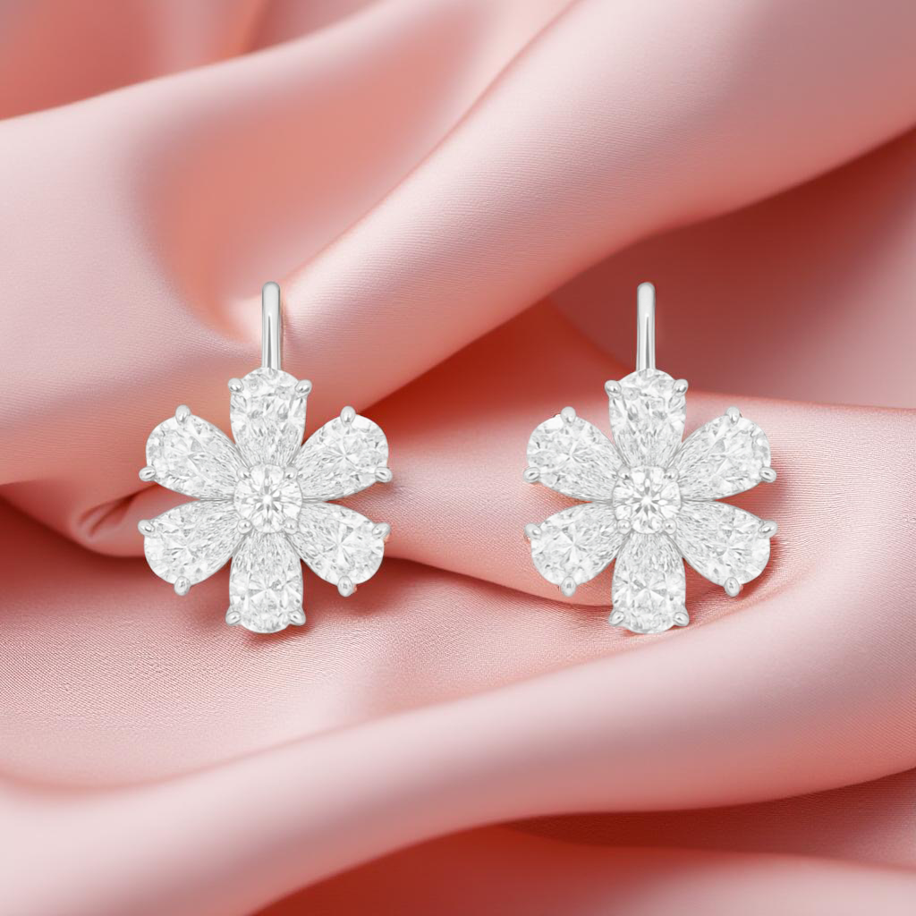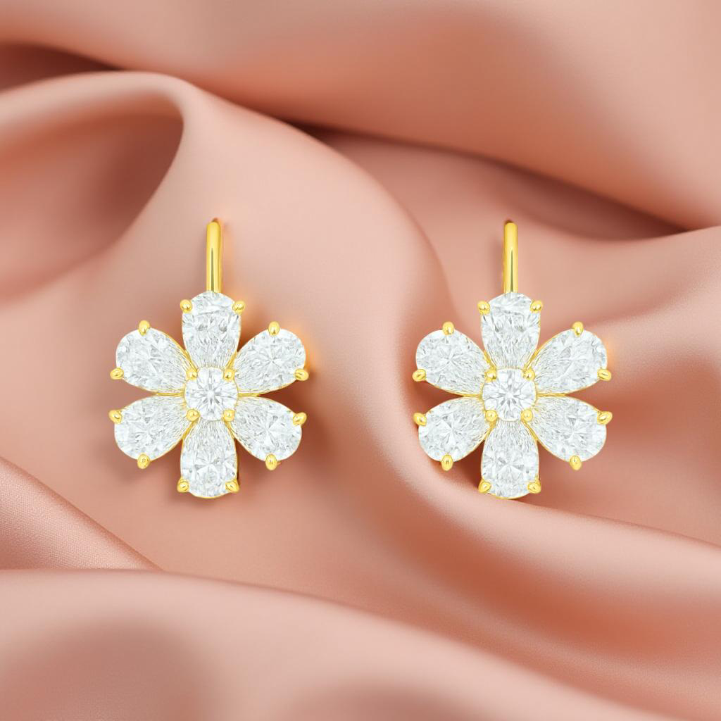 The BLOOM Classic Collection 4.50 Carat Flower Design Pear Shape Diamond Earring 18Kt Yellow White Gold
