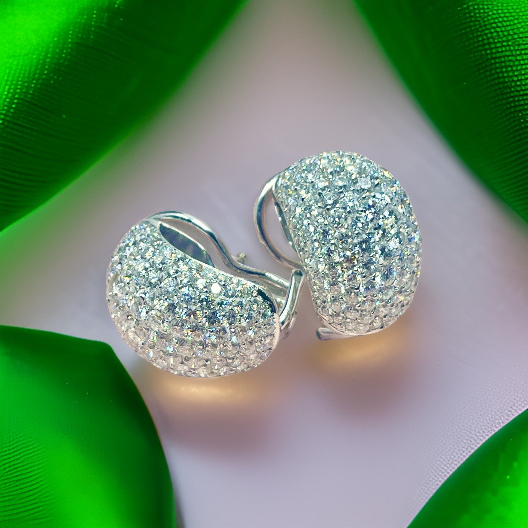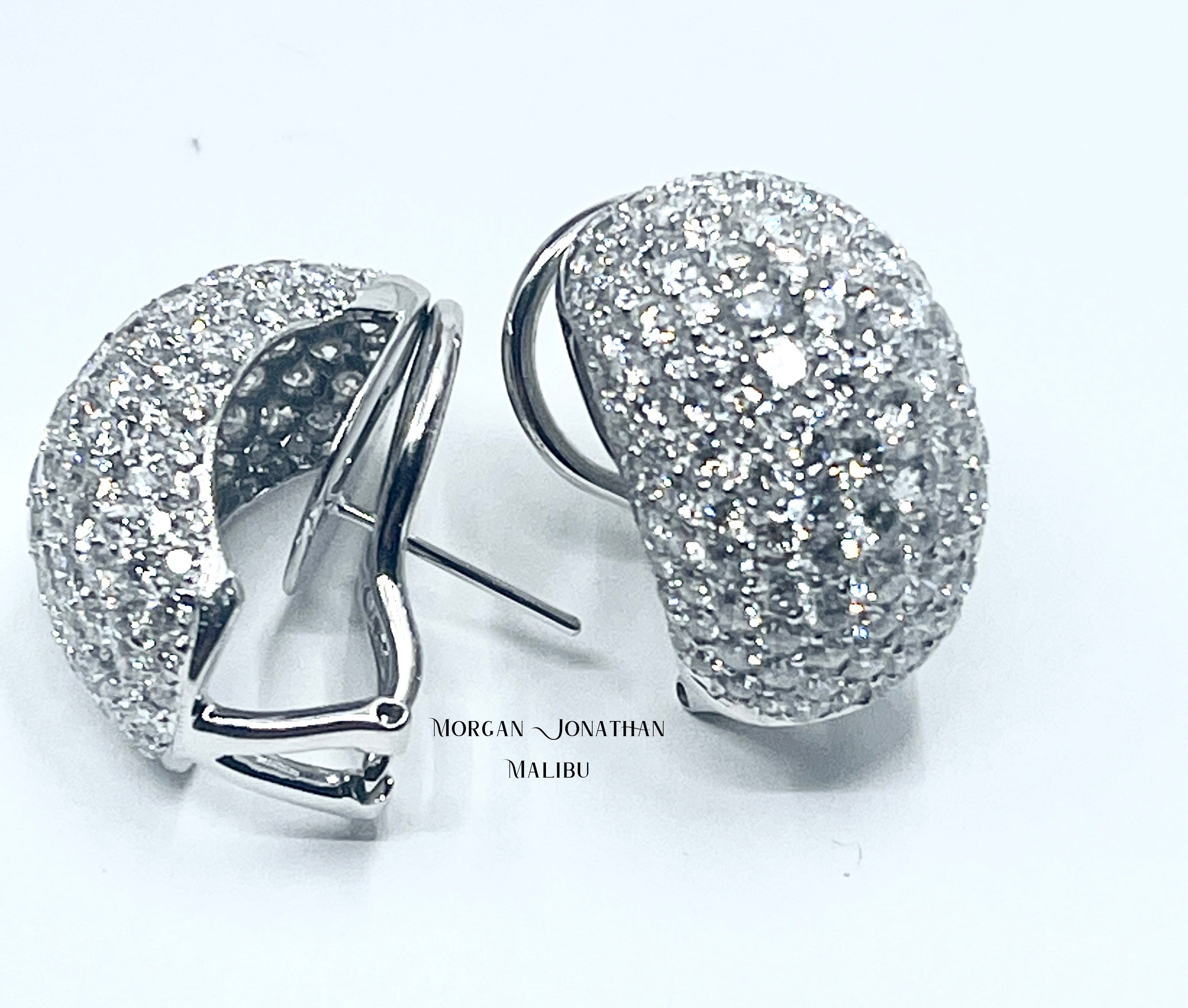 Pave' Diamond Earrings. 10.00 Carats Total Weight. 18KT White Gold.