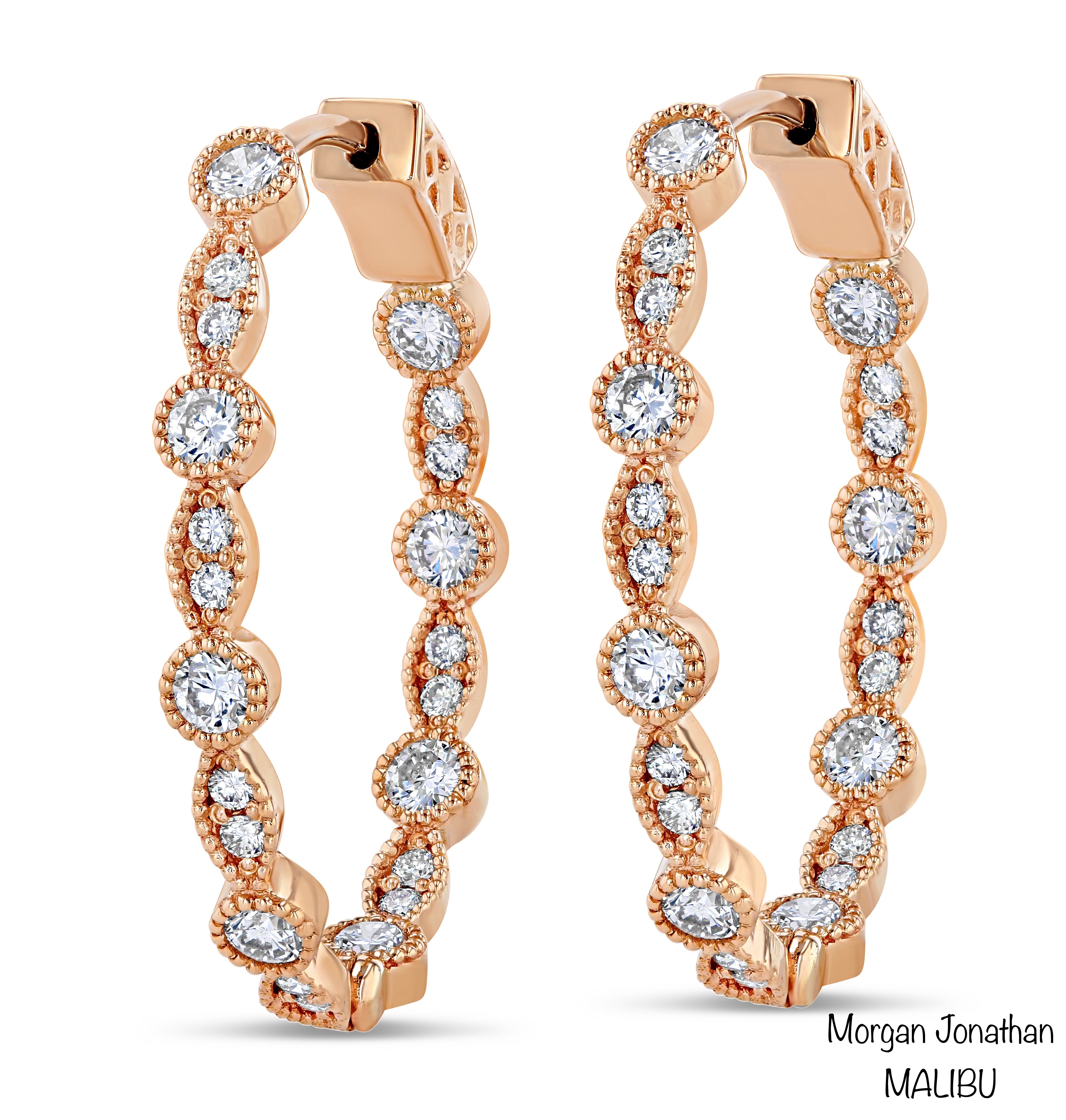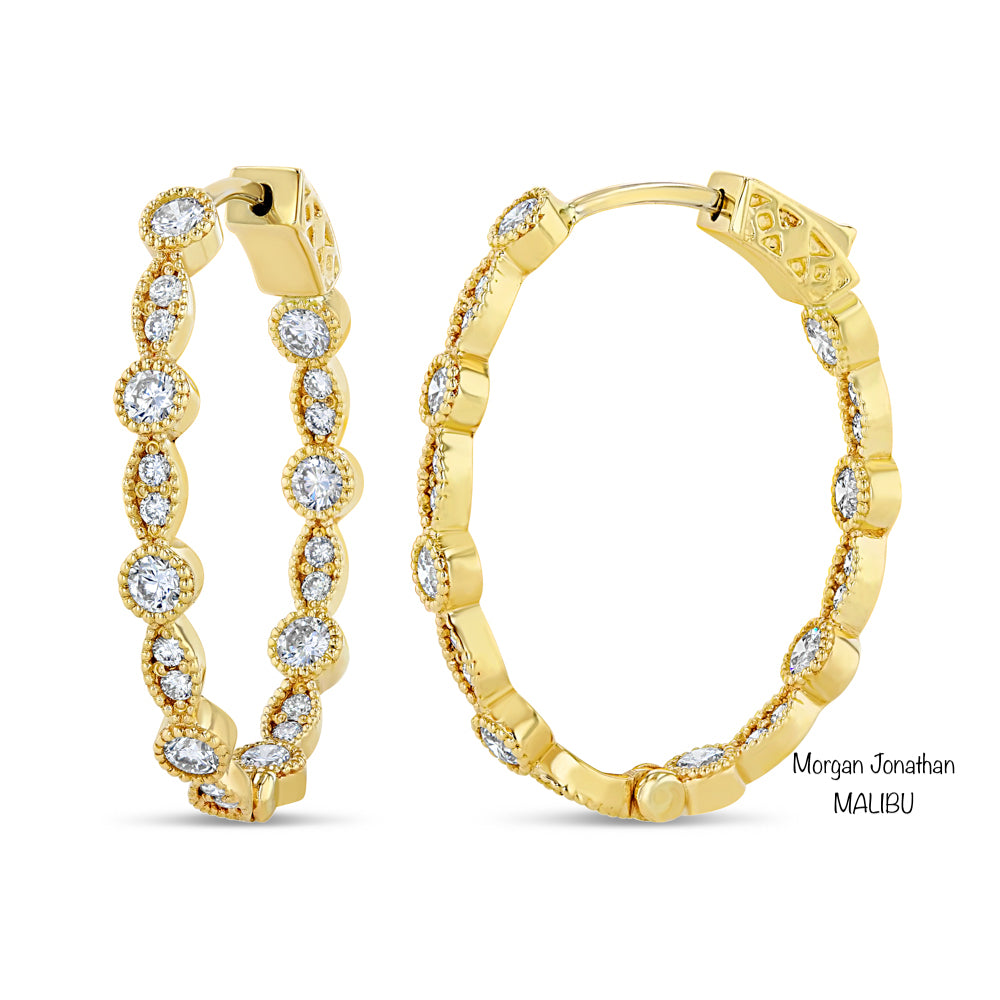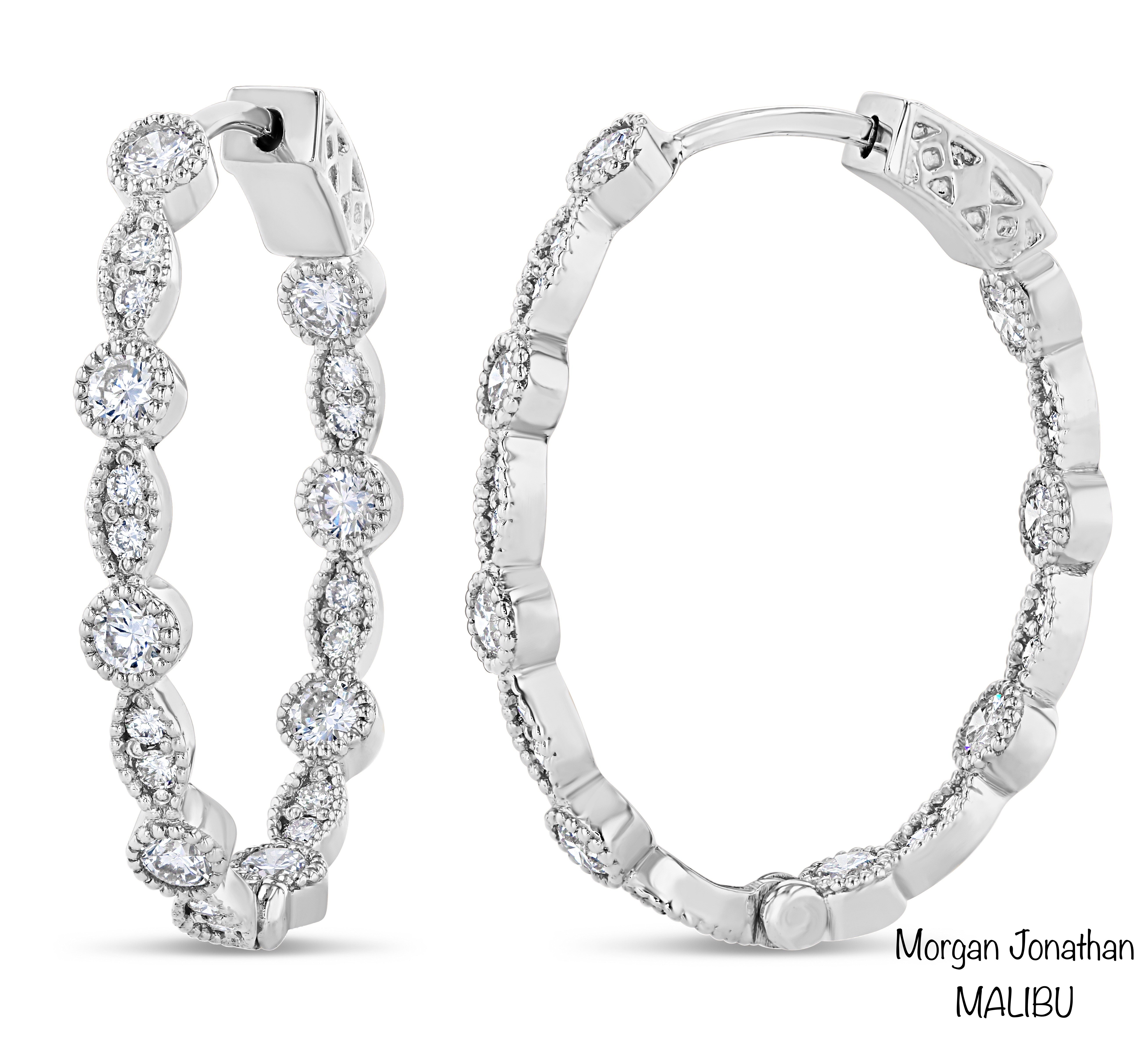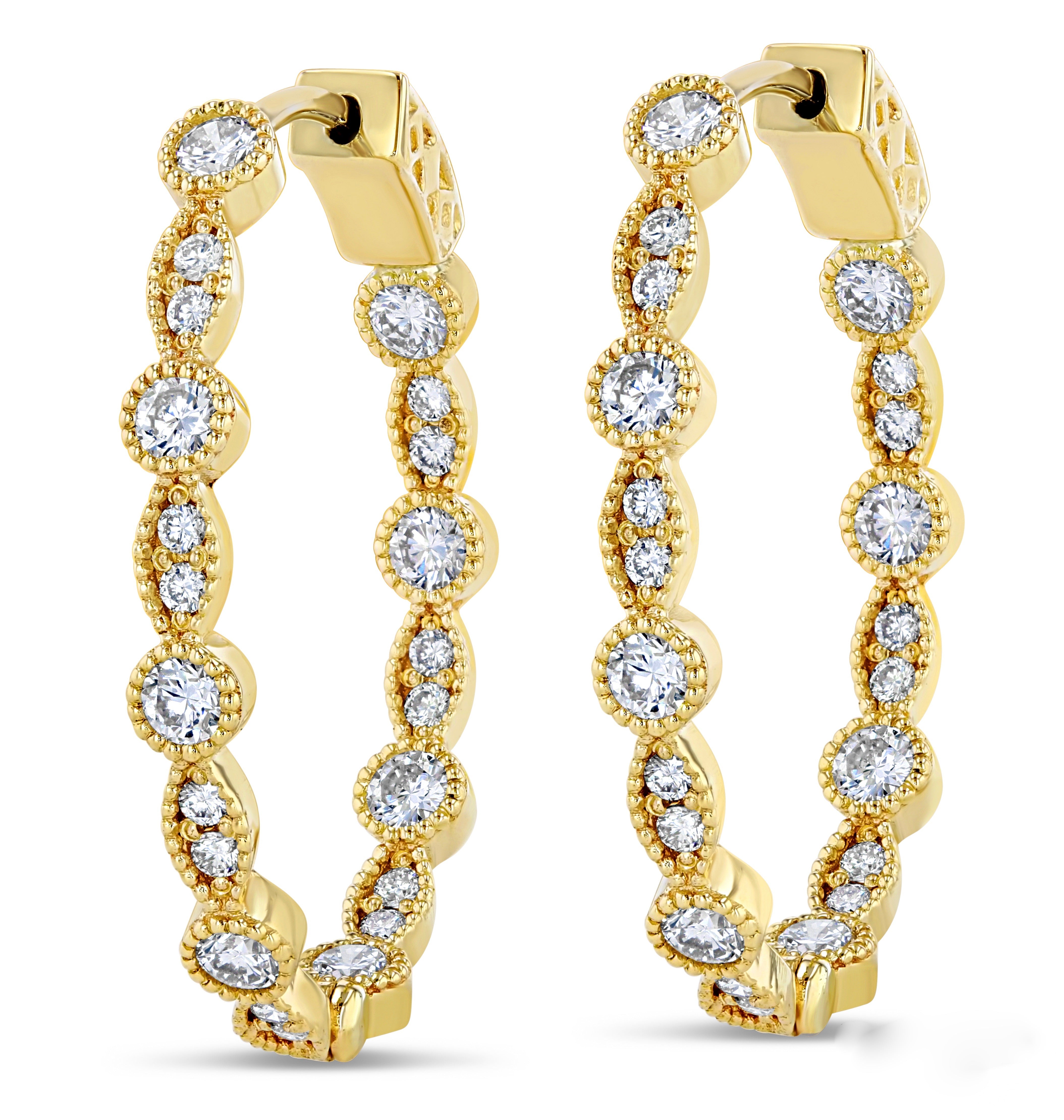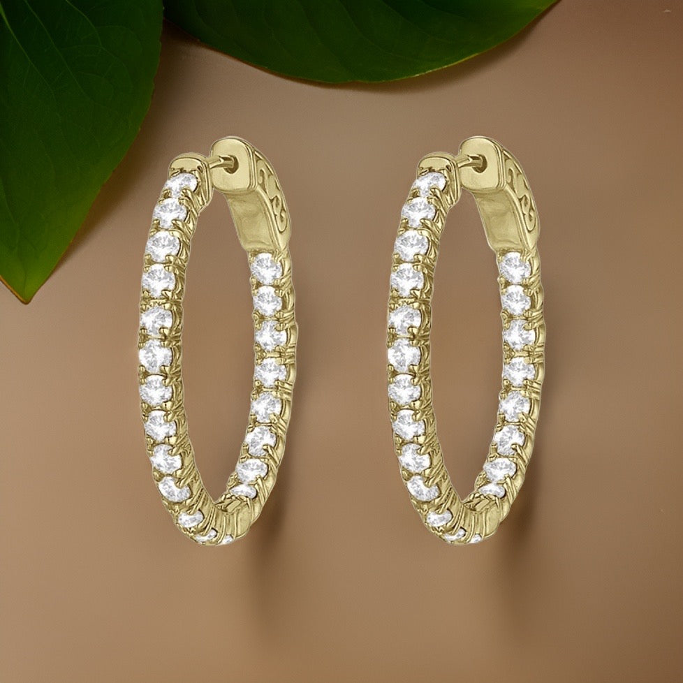 ALYSSA. ENDLESS DIAMOND INSIDE OUT HOOP EARRINGS . 1.00 Carat to 4.00 Carat Total Weight