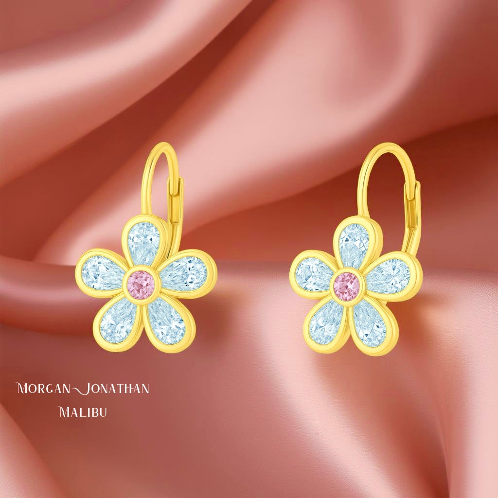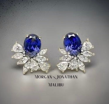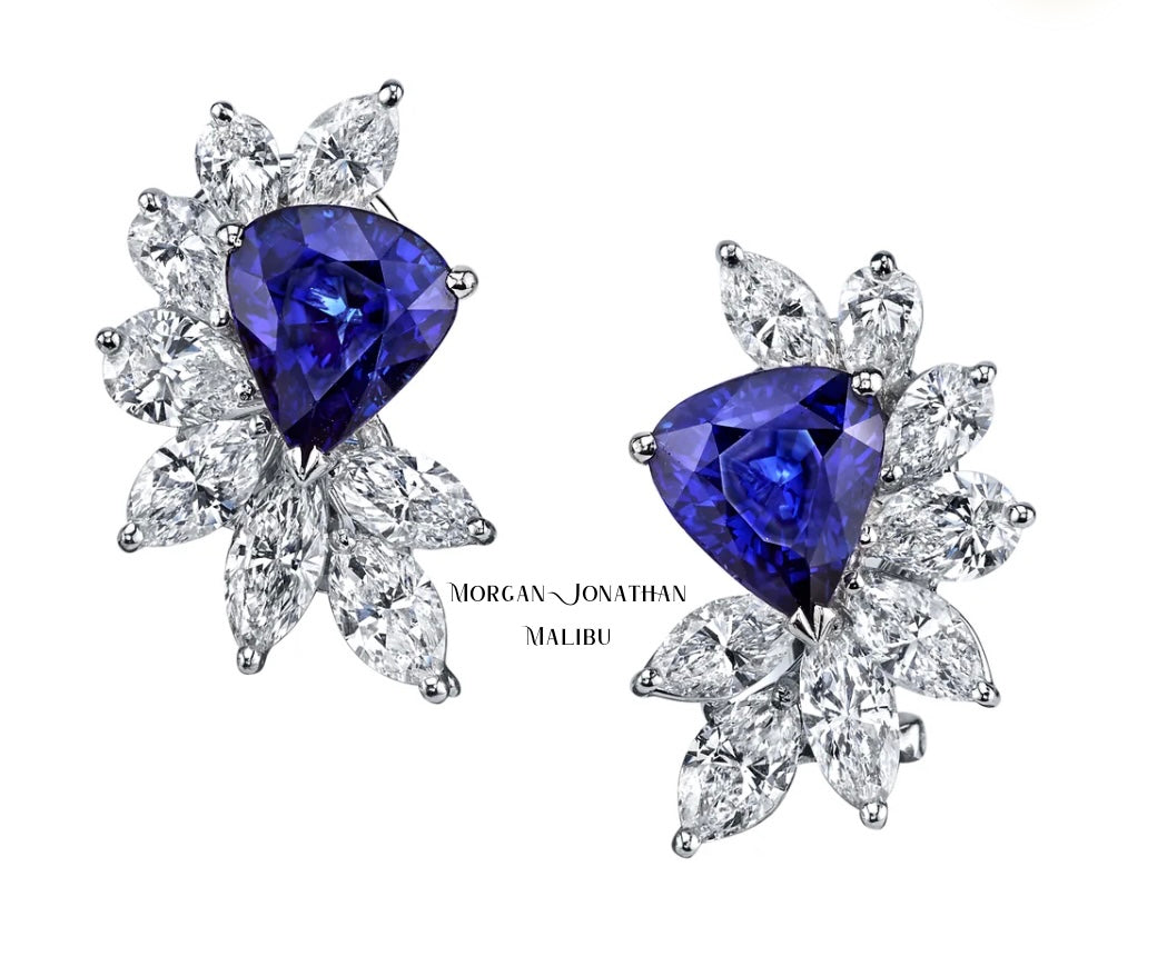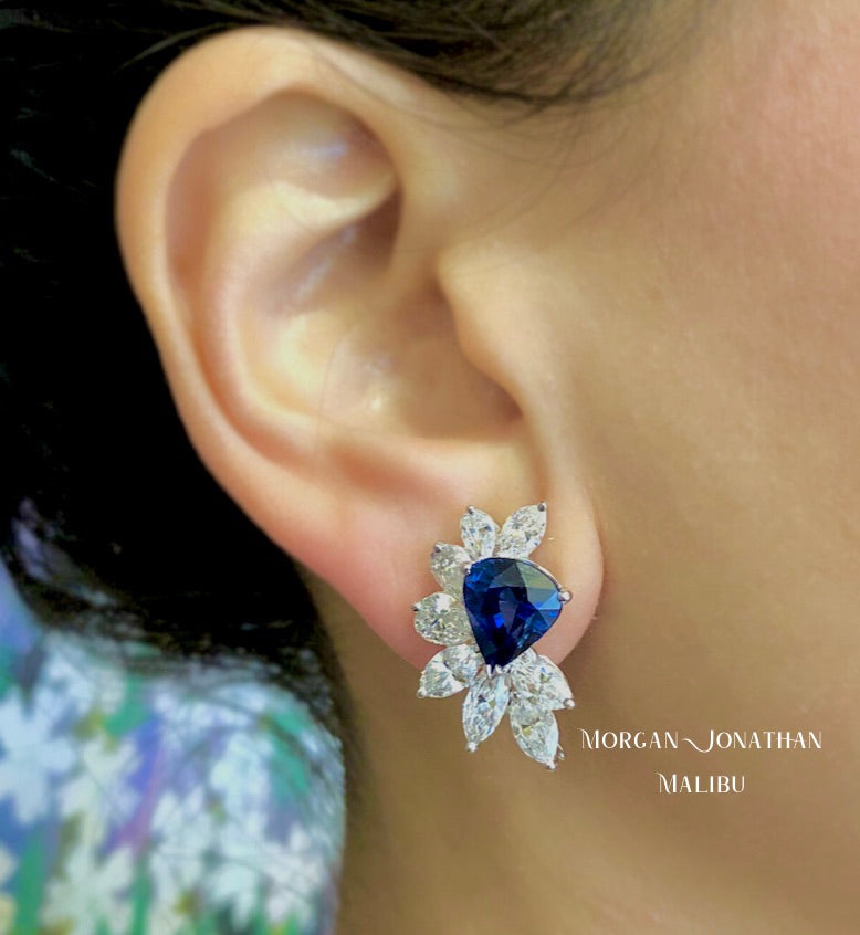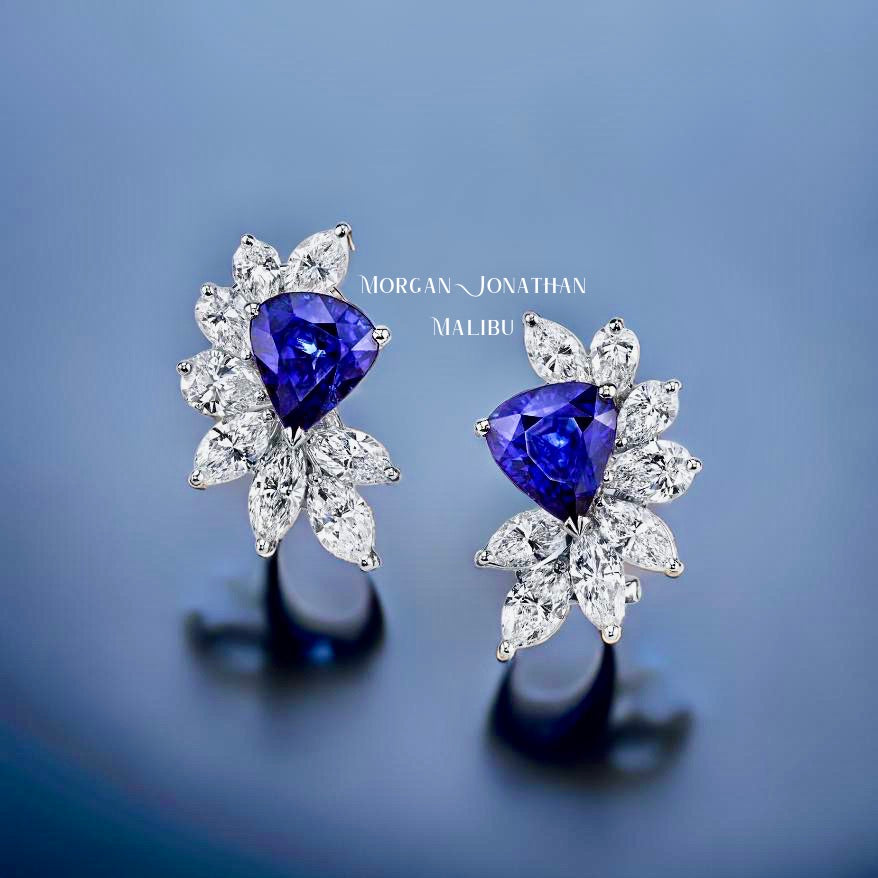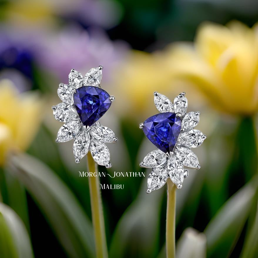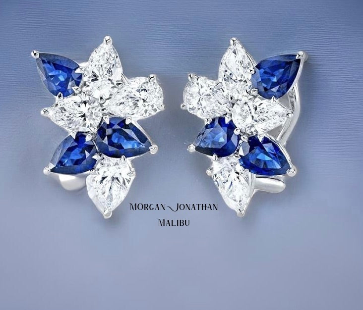 Pear Shape Diamond & Sapphire Earrings. Scattered Petals Design "PETALS COLLECTION"