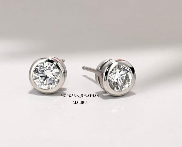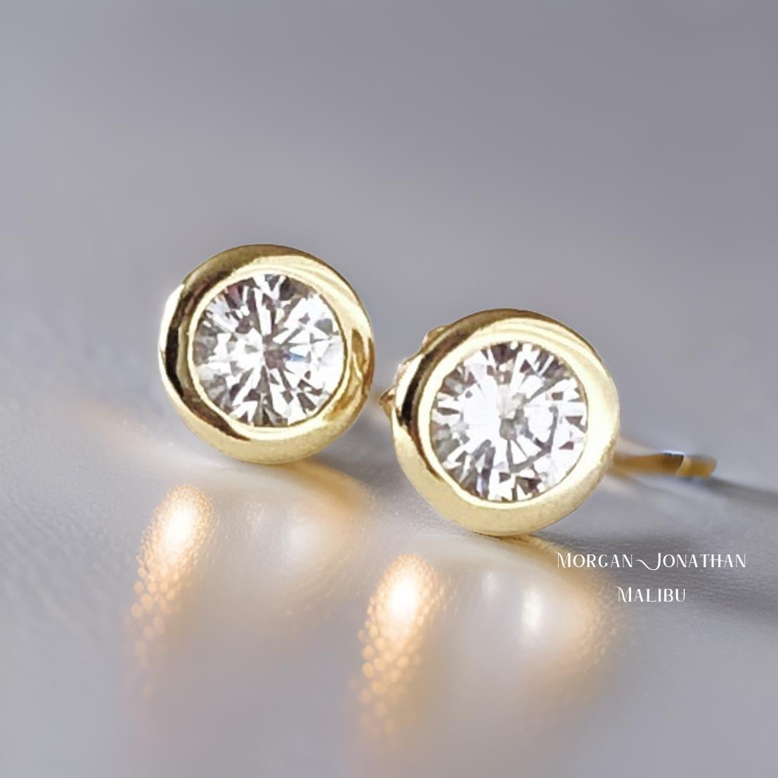 Diamond Stud Earrings 14Kt Gold Bezel Set "The Carat Collection" .50Ct, .75Ct , 1.00Ct, 1.50CT, 2.00Ct