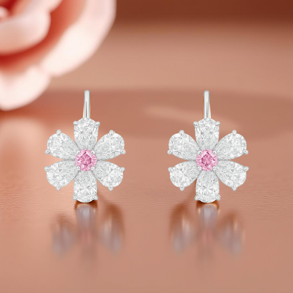 The BLOOM Classic Collection 2.50 Carat Flower Design Pear Shape Diamond Earring 18Kt Yellow White Gold