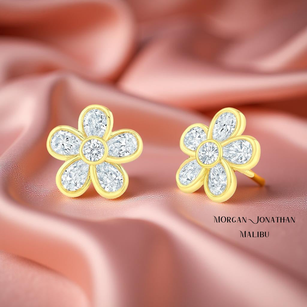 The BLOOM Signature Collection 4.50 Carat Flower Design Pear Shape Diamond Earring 18Kt Yellow Gold