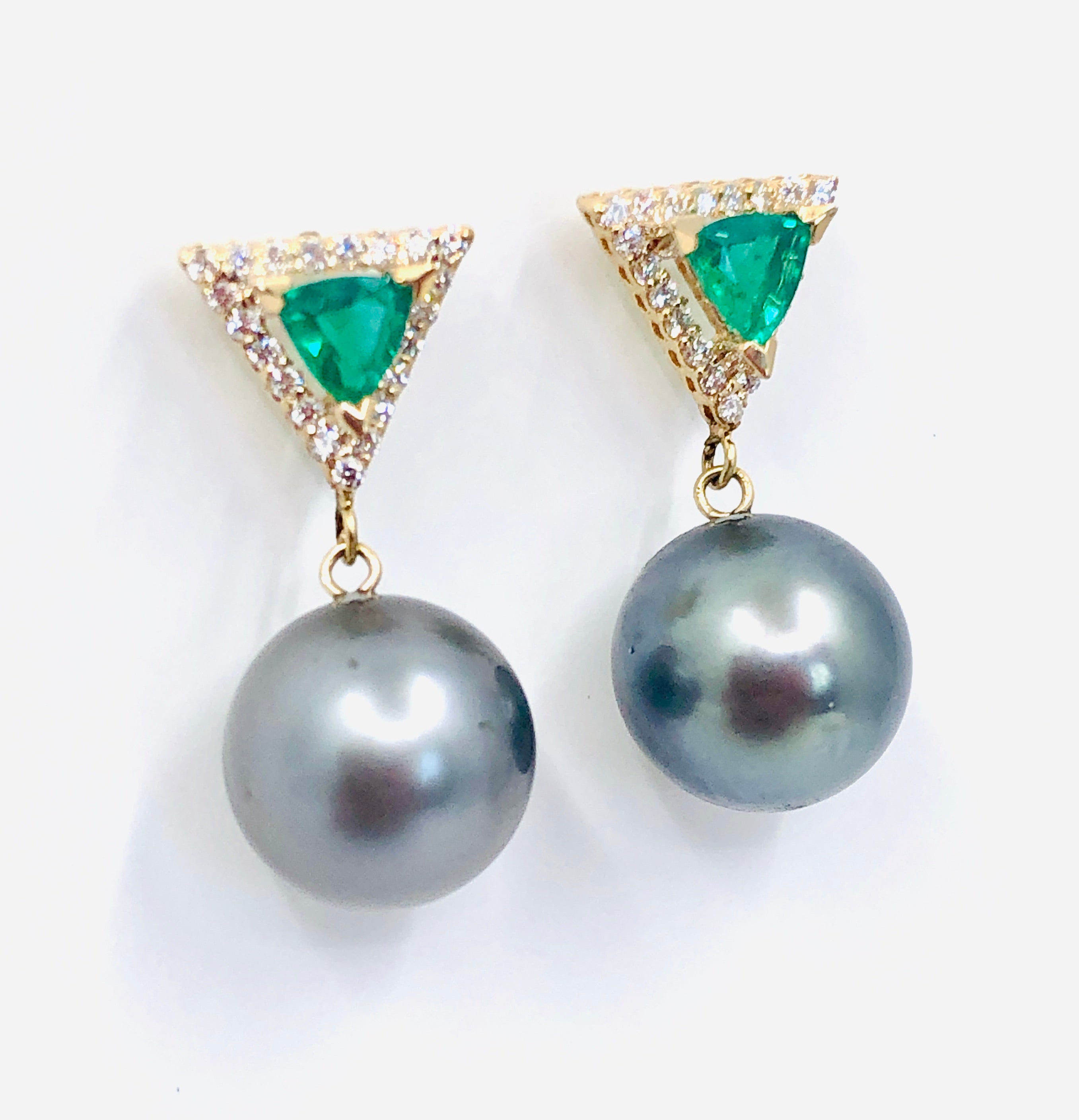 DIAMONDS, PEARLS AND EXQUISITE EMERALD DANGLE EARRINGS