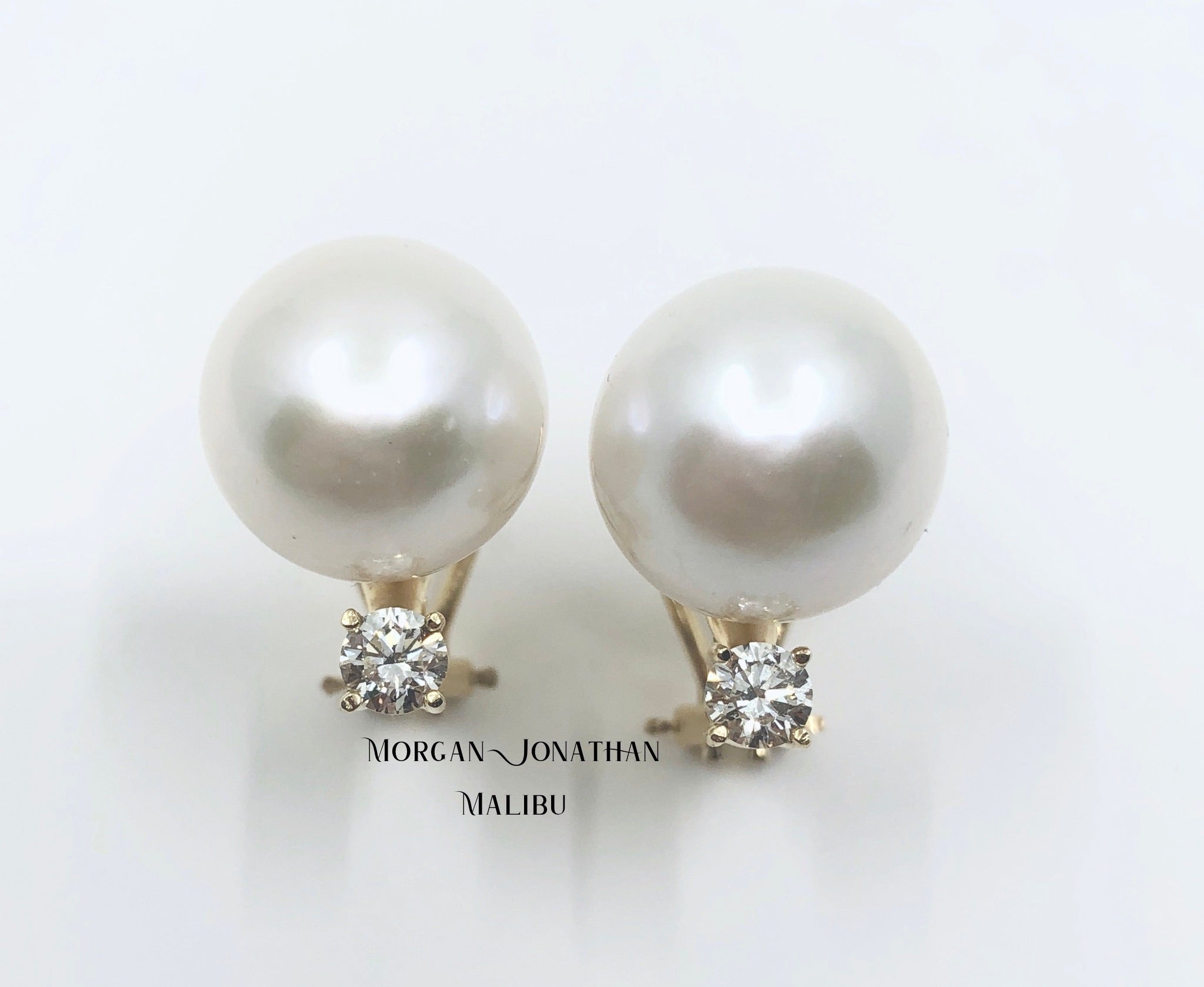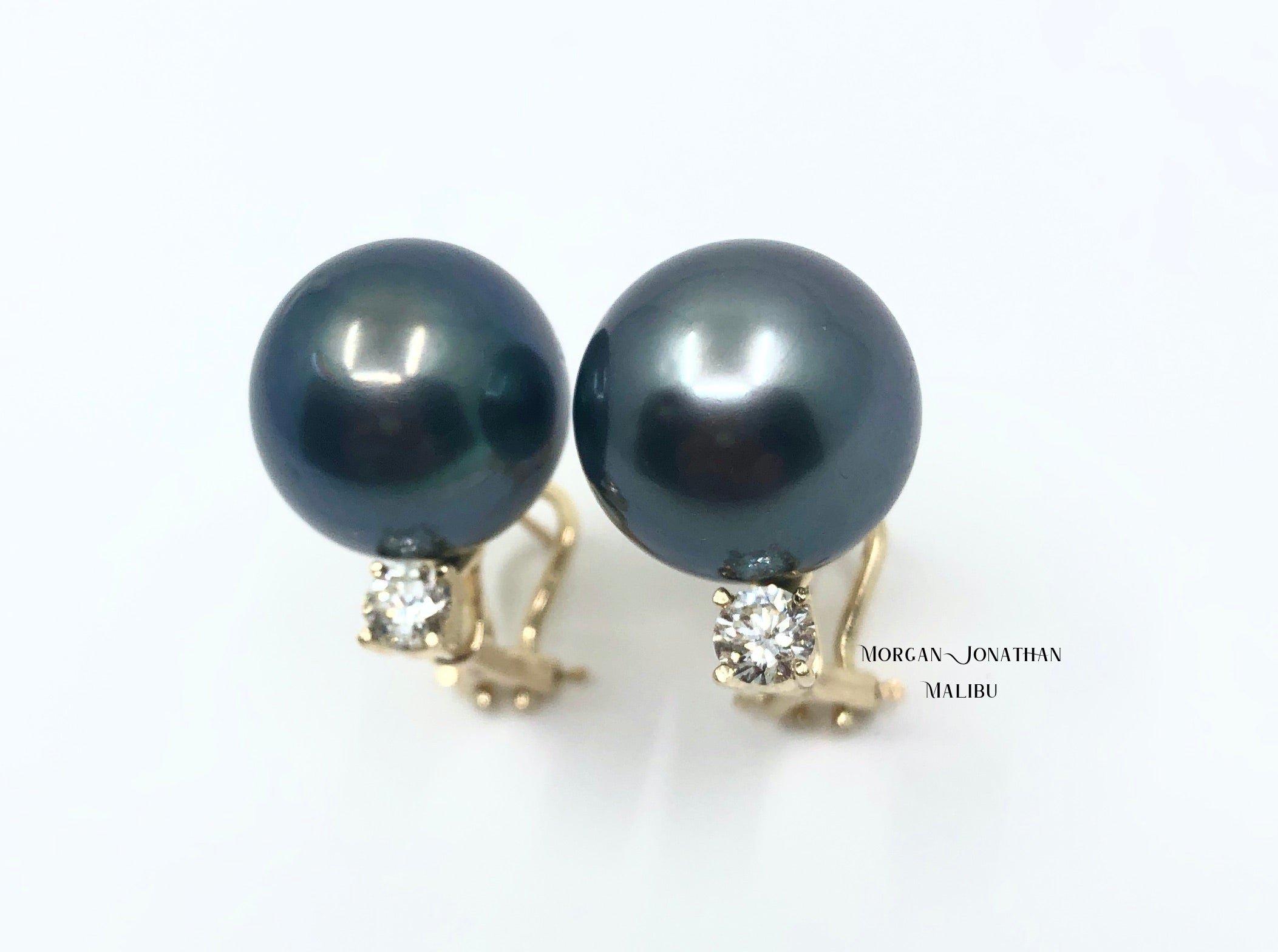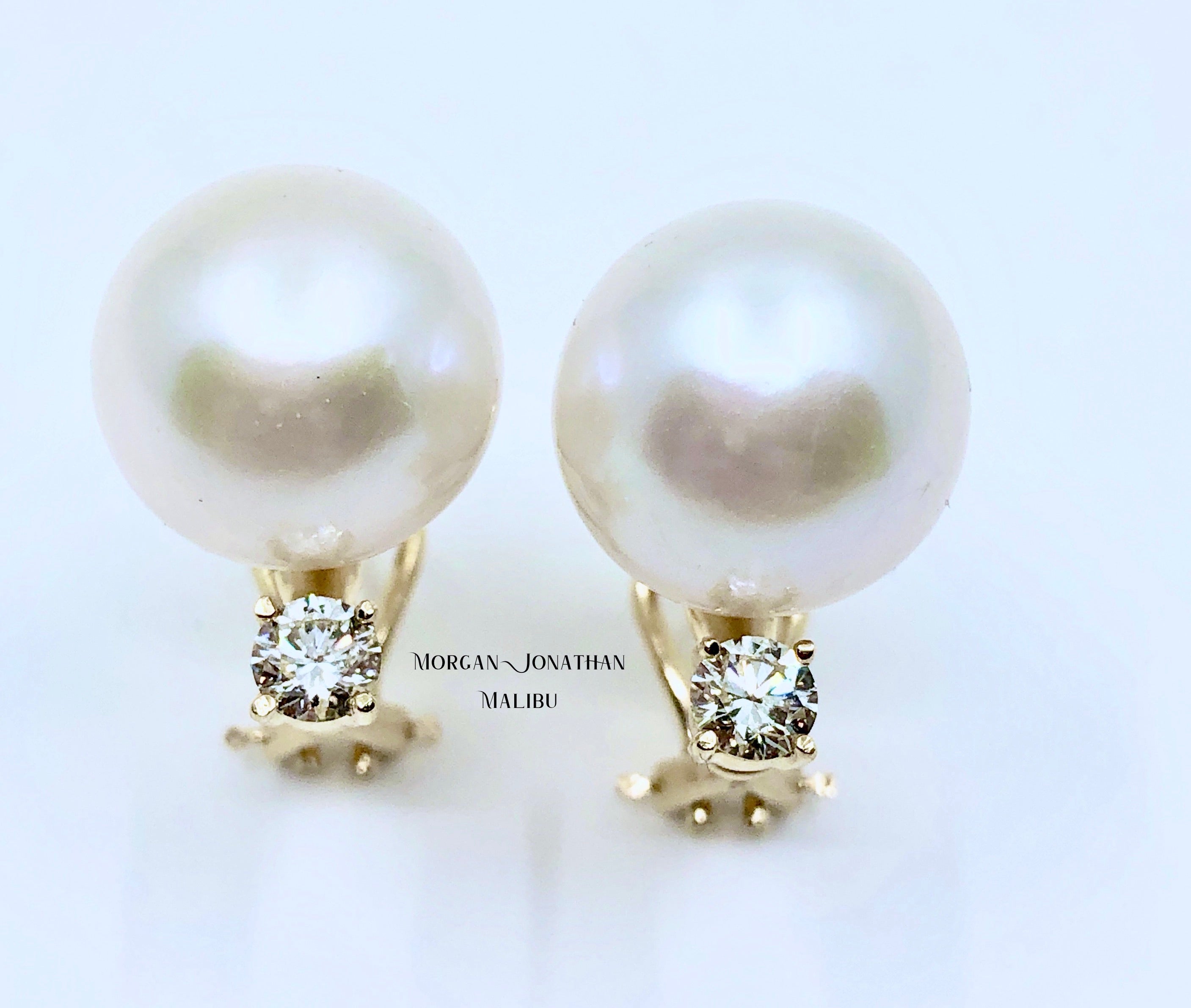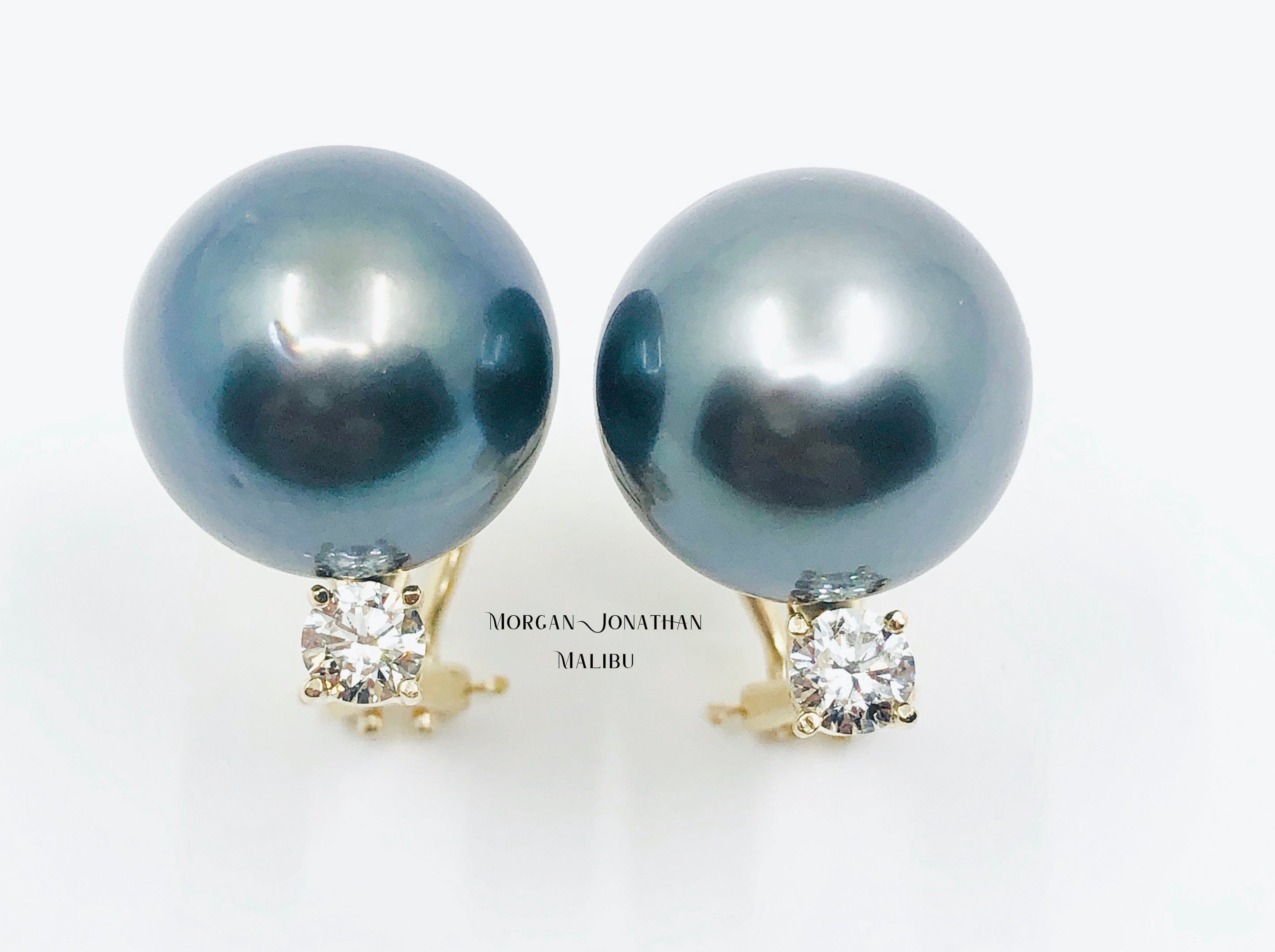 HONEYMOON IN TAHITI. TAHITIAN SOUTH SEA PEARL AND DIAMOND EARRING