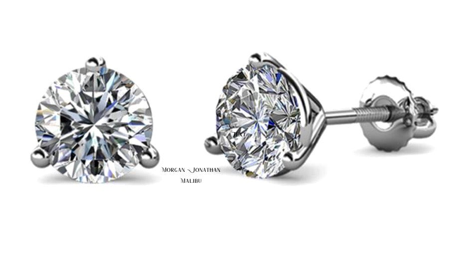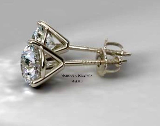 Diamond Solitaire Earrings. 2.00ct Total Weight. 3 Prong "MARTINI" Settings 14kt White Gold