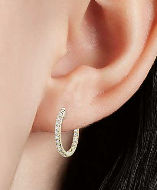 AARYN. ALL DIAMOND IN AND OUT HOOP STYLE EARRING.