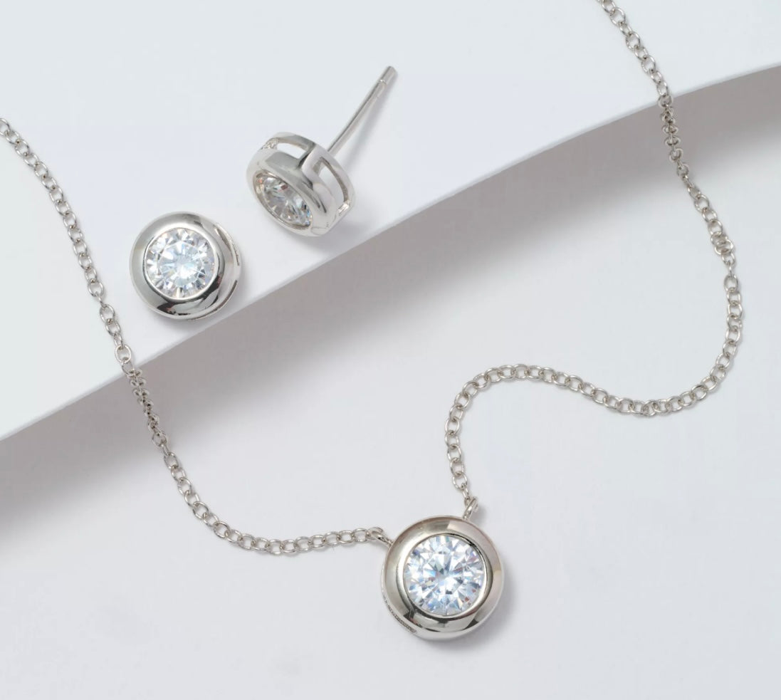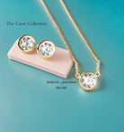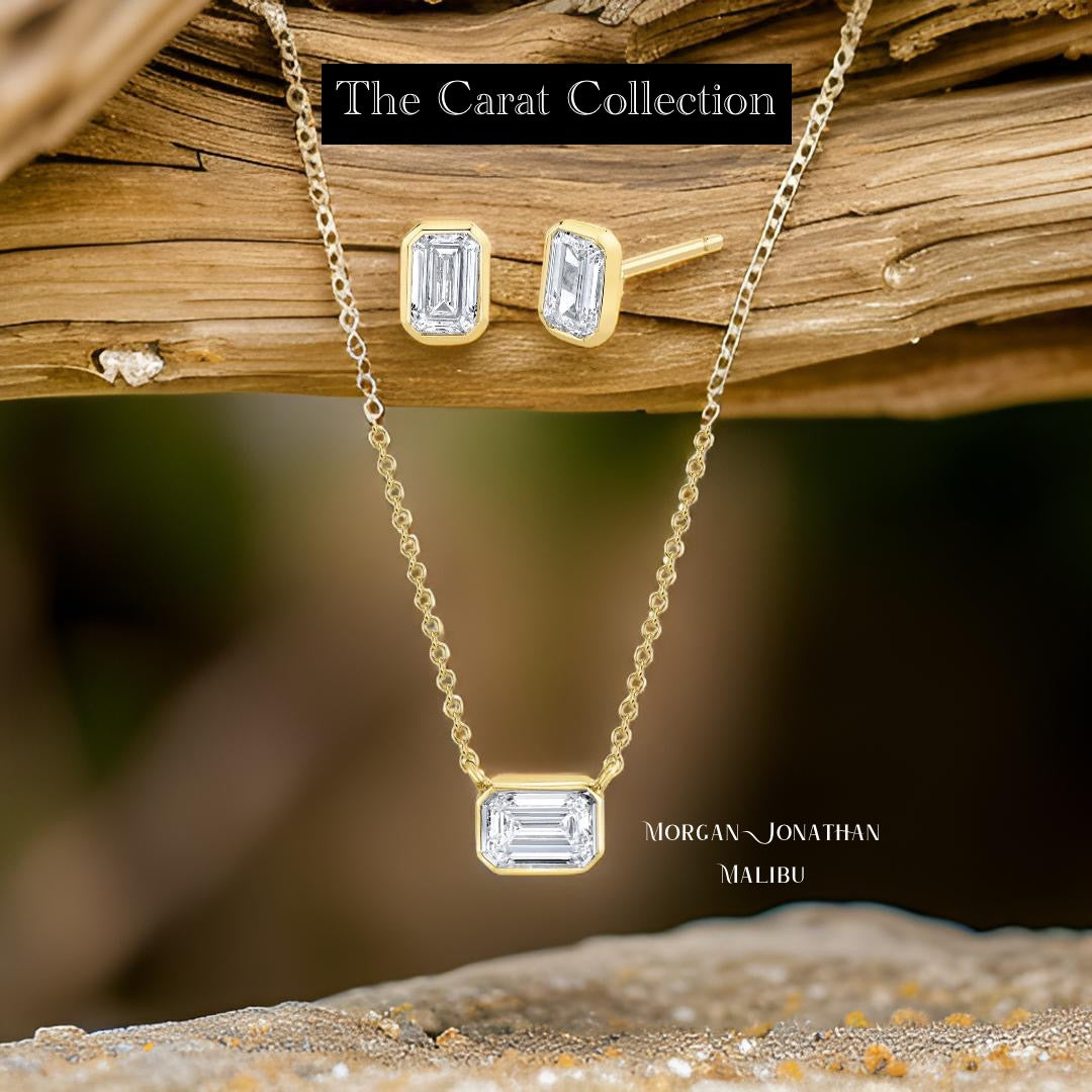 CARAT COLLECTION. BEZEL SET DIAMOND NECKLACE & EARRING TRIO. 14KT GOLD .75 CARAT, 1.00 CARAT, 1.50 CARAT, 2.00 CARAT, 3.00 CARAT