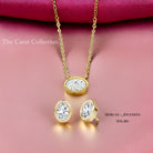 A NECKLACE AND EARRING ENSEMBLE OF 3 MATCHED G.I.A. CERTIFIED DIAMONDS OF PREMIER QUALITY, WRAPPED IN BEZELS OF SOLID GOLD. ONLY NATURAL EARTH MINED ETHICALLY SOURCED DIAMONDS. VS CLARITY E/F COLOR MATCHED AND COMBINED TO CREATE A INCOMPRABLE THREE PIECES ENSEMBLE
