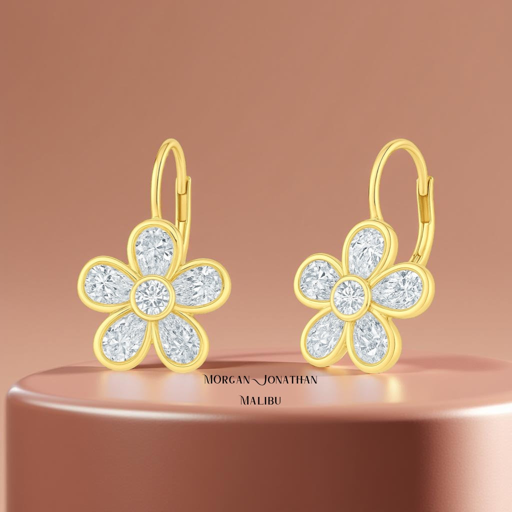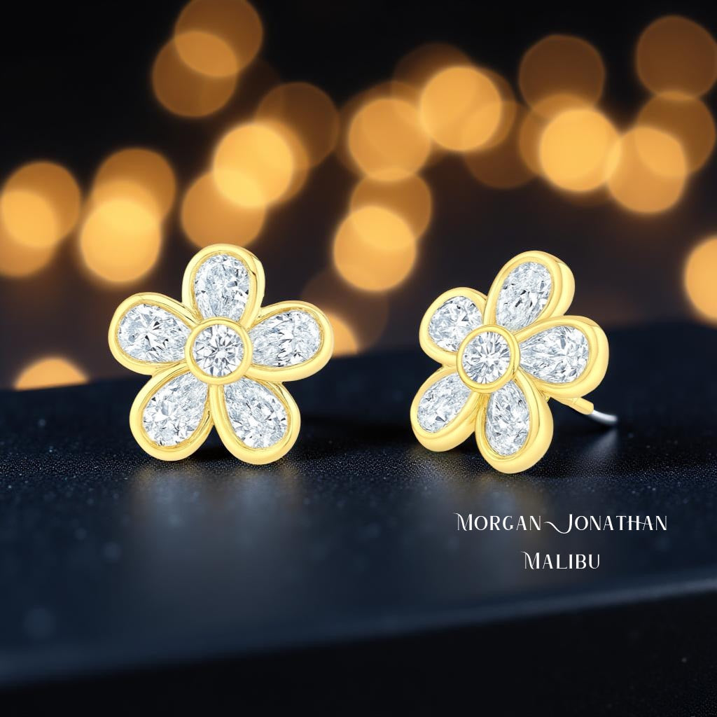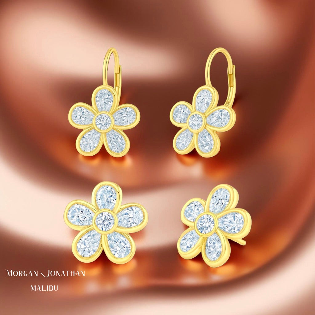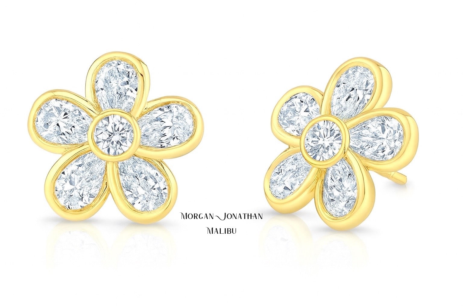 The BLOOM Signature Collection 2.50 Carat Flower Design Pear Shape Diamond Earring 18Kt Yellow Gold