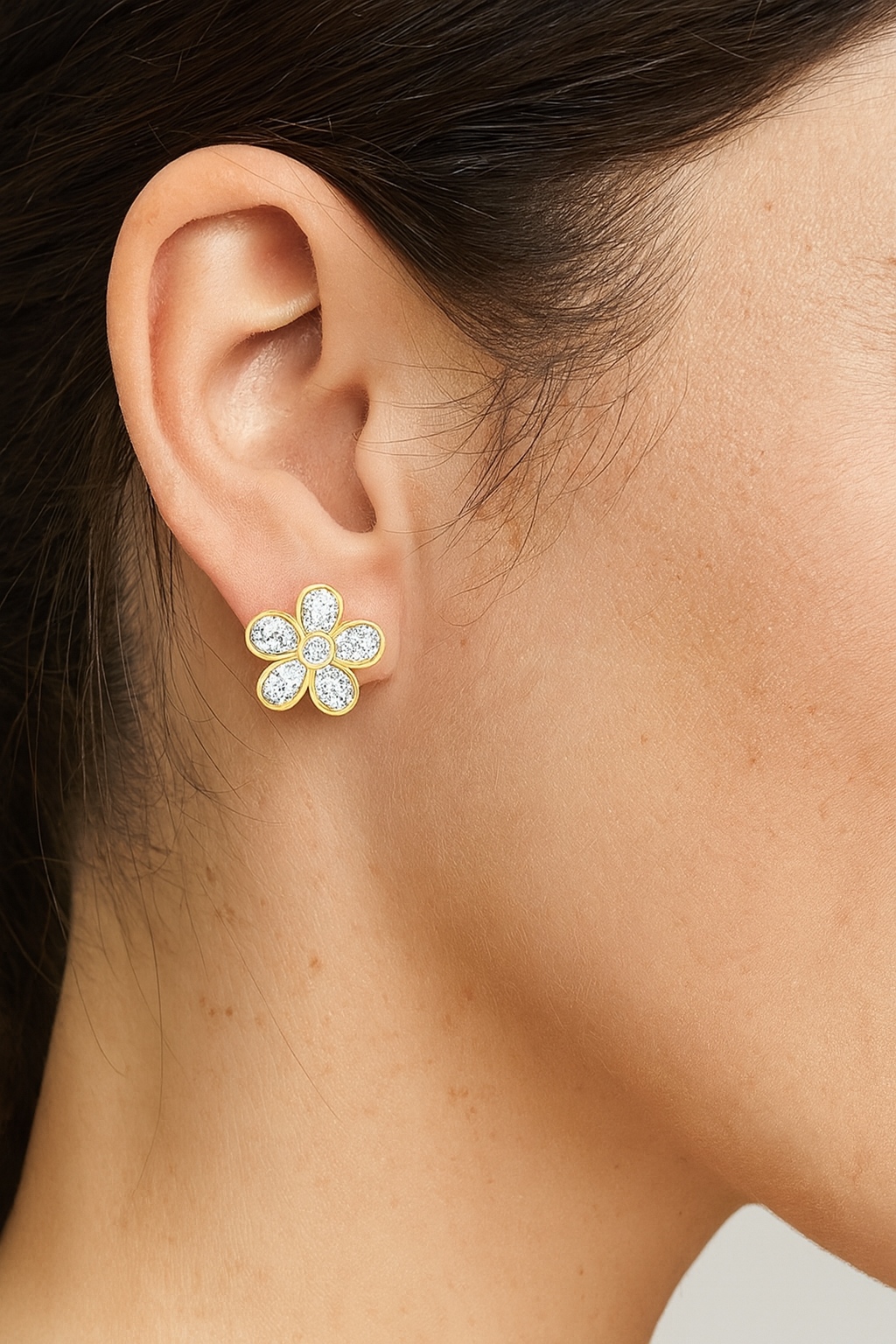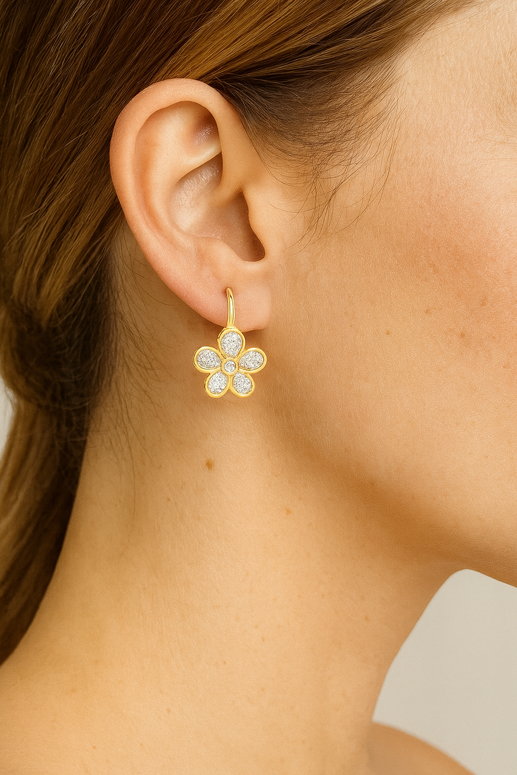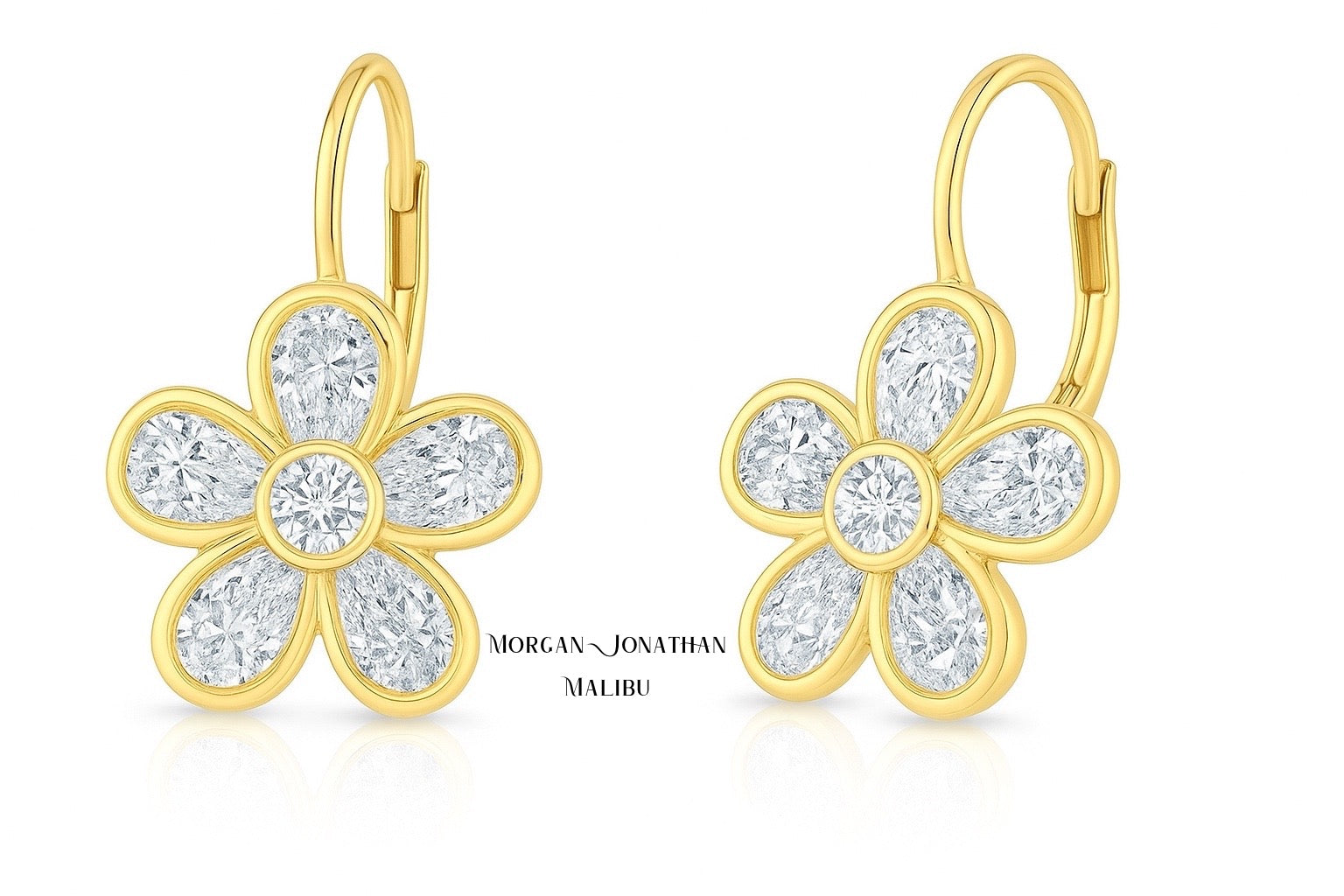 The BLOOM Signature Collection 2.50 Carat Flower Design Pear Shape Diamond Earring 18Kt Yellow Gold