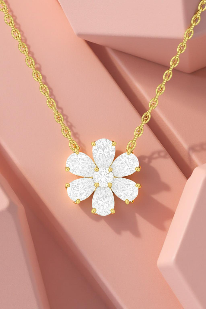 The BLOOM Classic Collection 1.25 Carat Flower Design Pear Shape Diamond Necklace 18Kt Yellow White Gold