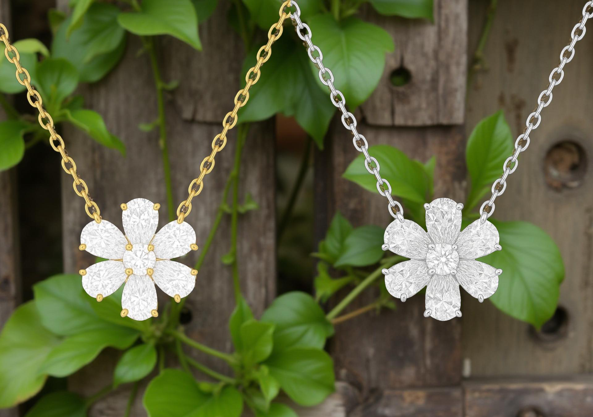 The BLOOM Classic Collection 2.25 Carat Flower Design Pear Shape Diamond Necklace 18Kt Yellow White Gold (Copy)