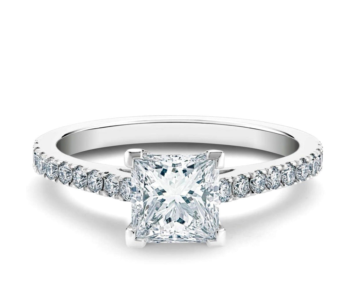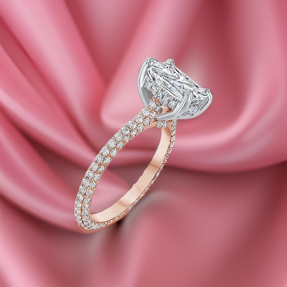 "THE PRINCESS" Diamond Solitaire With Hidden Halo & PAVE' Band. 18Kt Yellow, White Or Platinum.