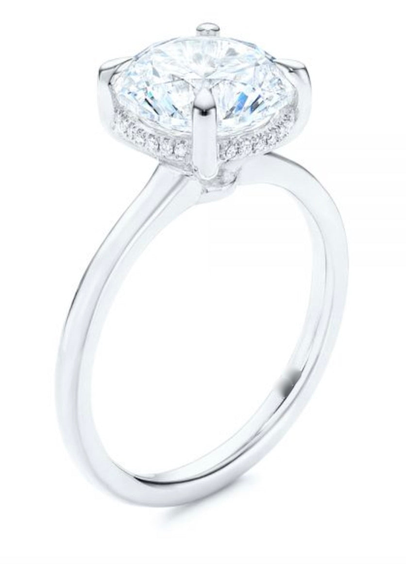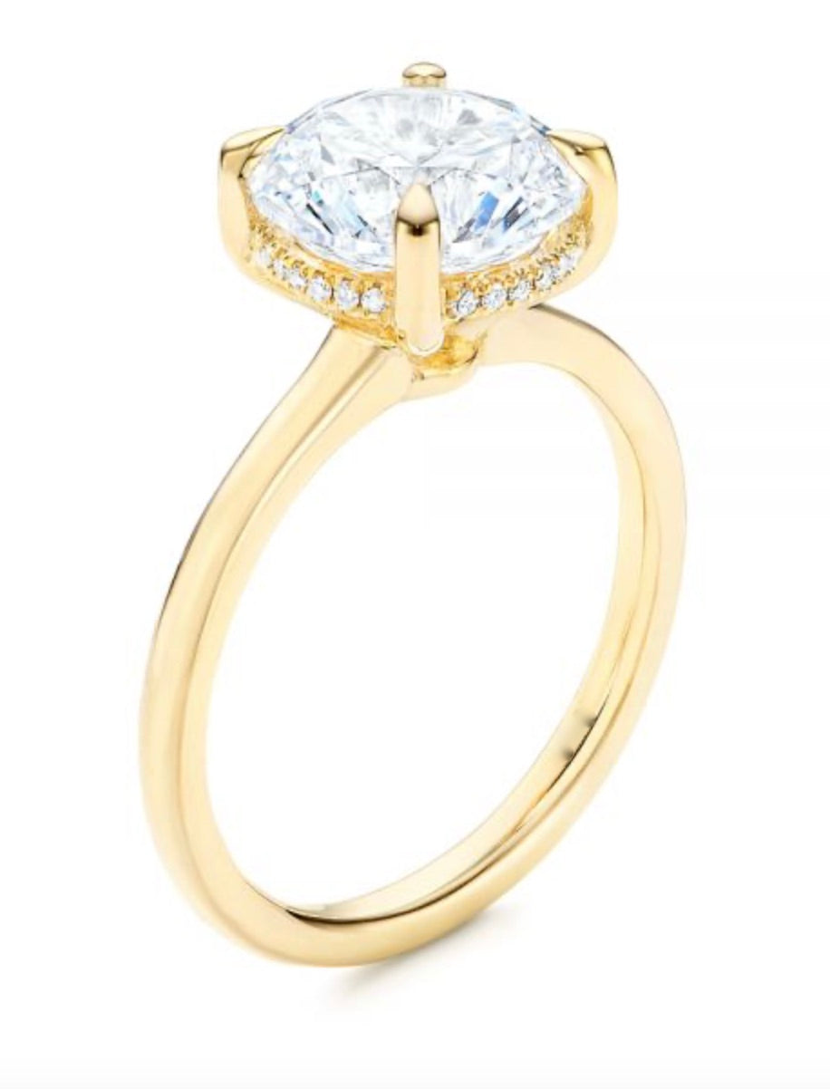 M.J. CLASSIC Diamond Solitaire Hidden Halo Ring Setting . 18Kt Yellow Gold White Gold or Platinum