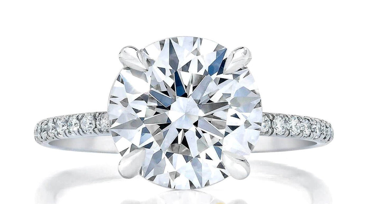 M.J. CLASSIC Diamond Solitaire Ring Setting with Diamond PAVE' Accent. 18Kt Gold or Platinum