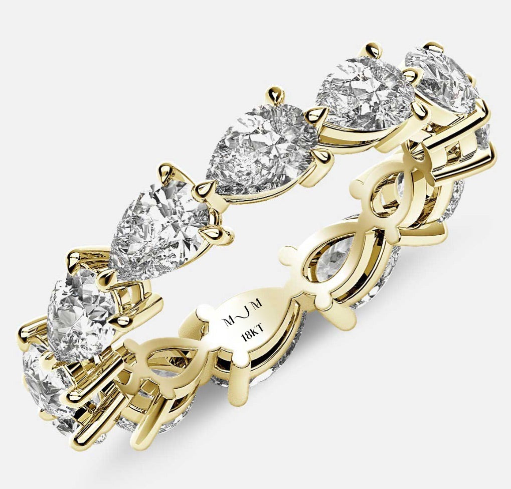 Extraordinary Pear Shape Diamonds Set End To End Completely Embracing The Finger In An Eternity Style Handcrafted Setting. OUR 2.00 to 2.75 Carat Version