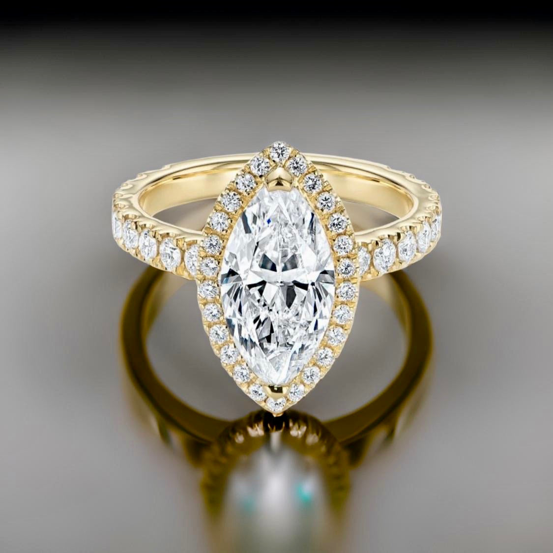Marquise Diamond Ring Original Custom 18kt Yellow Gold 1.00 Carat Marquise Diamond 1.50 Carat round diamonds