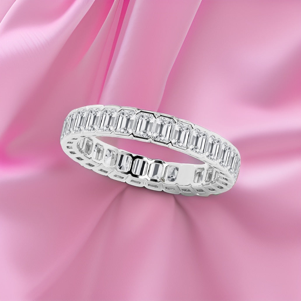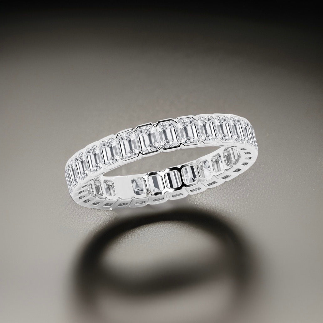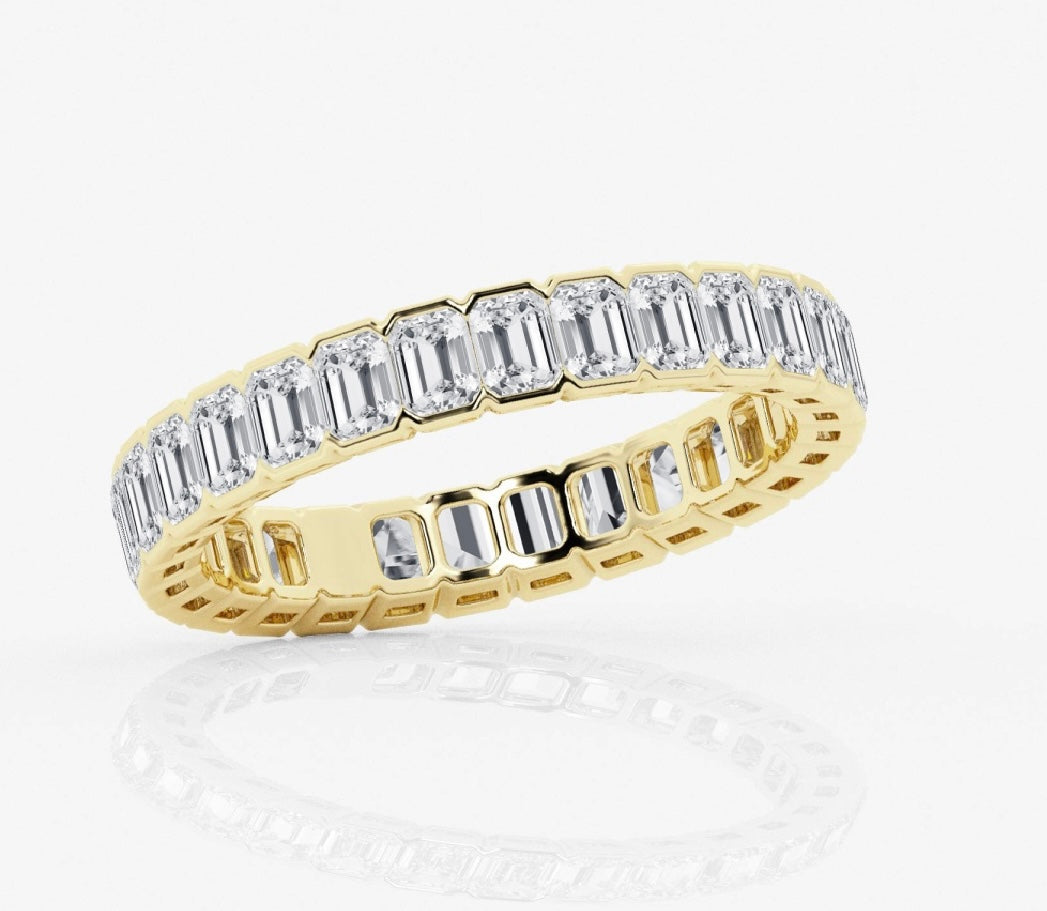Emerald Cut Diamond Eternity Band Half Bezel 3.00 Carat