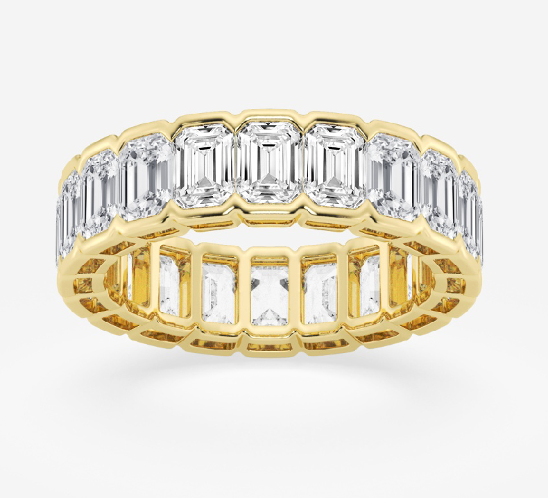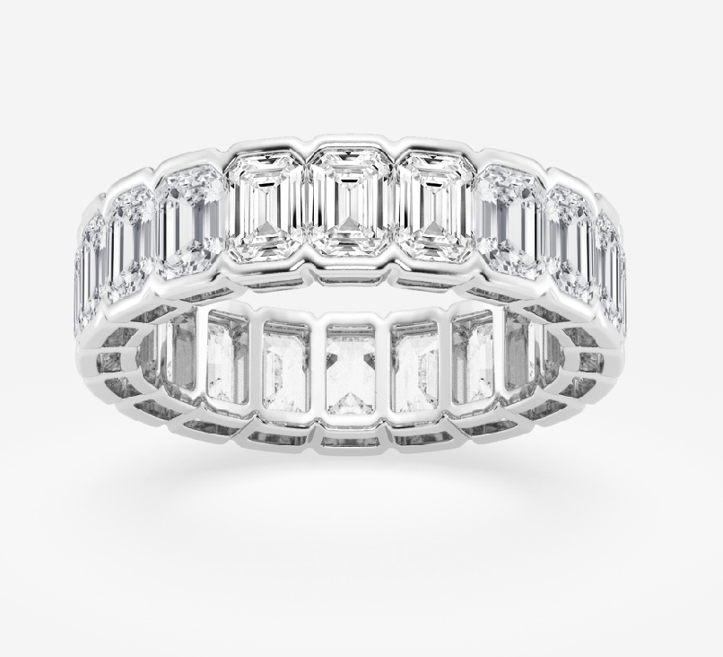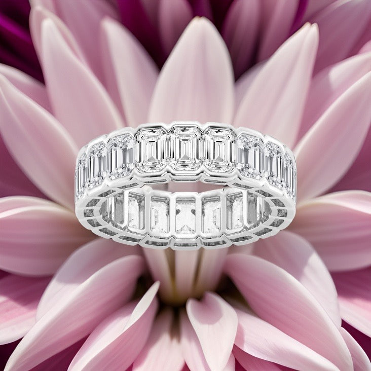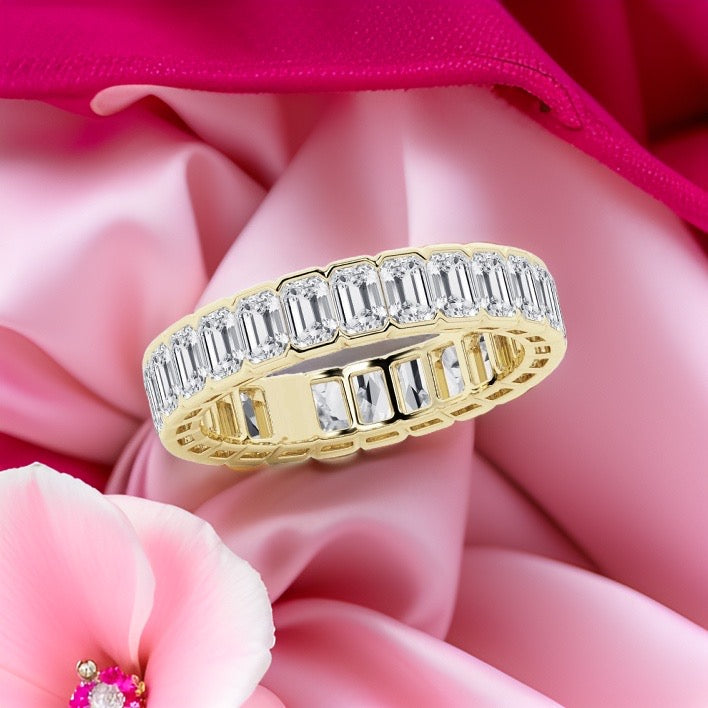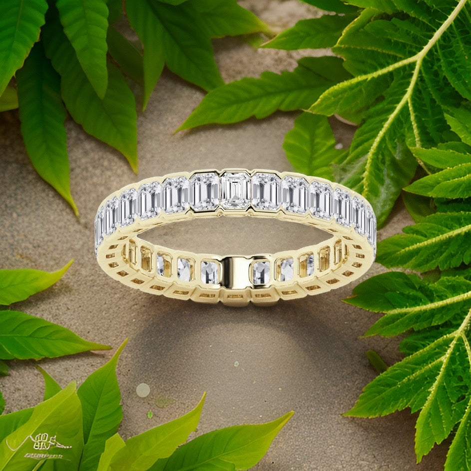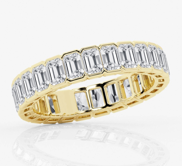 Emerald Cut Diamond Eternity Band Half Bezel 4.00 Carat