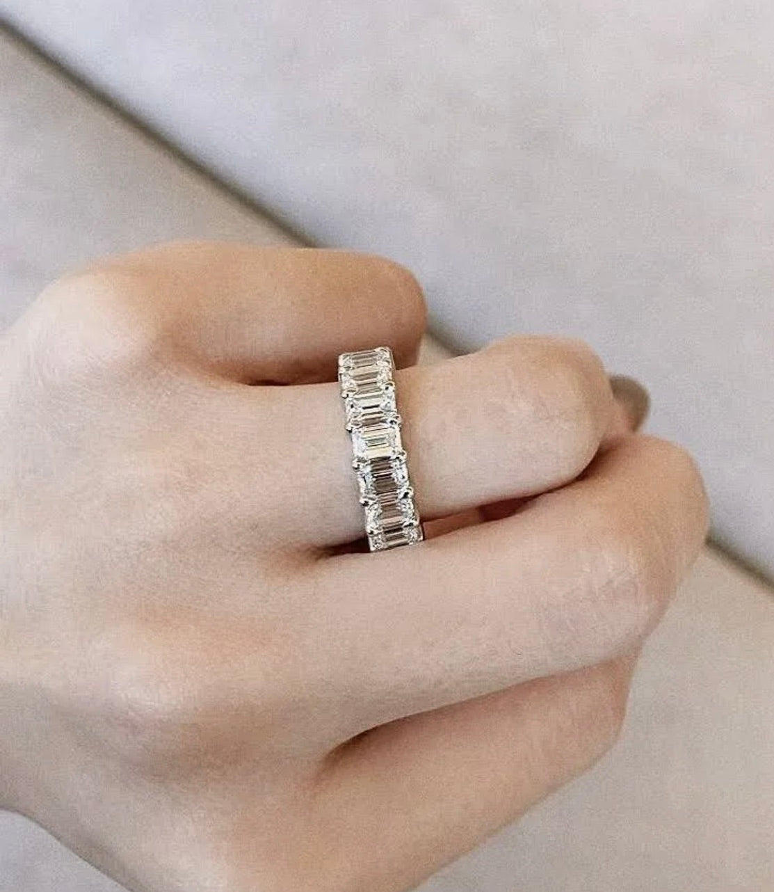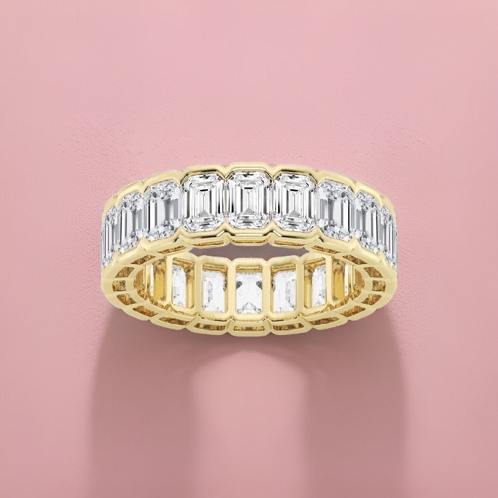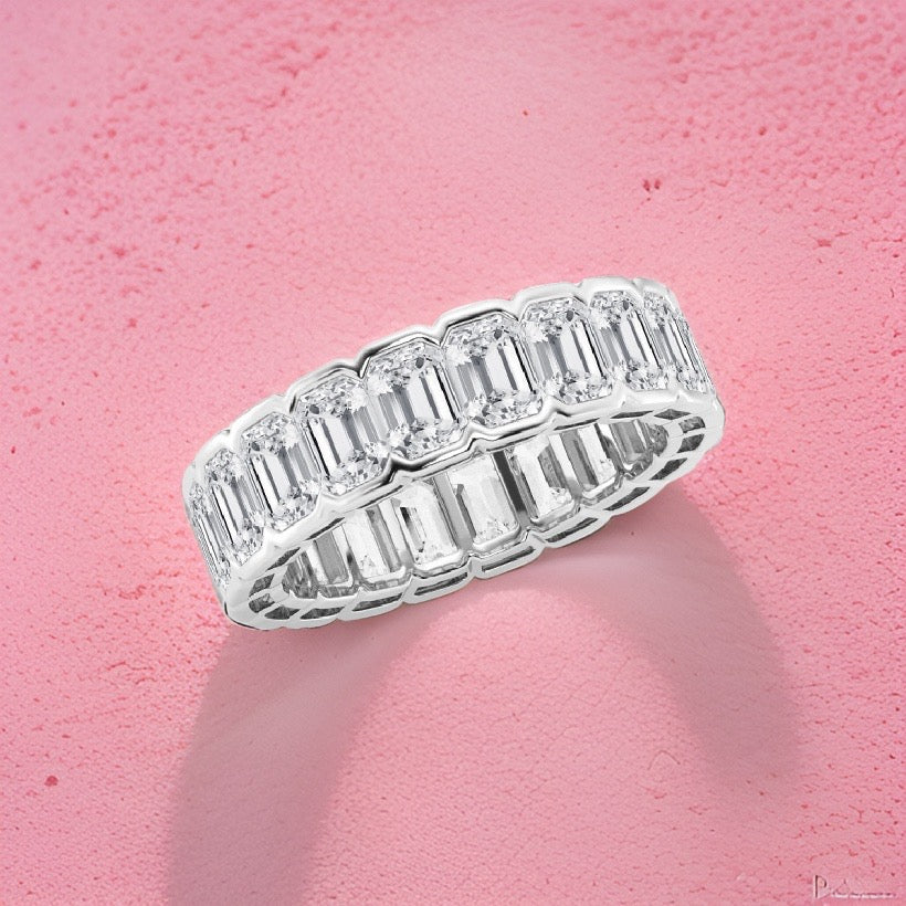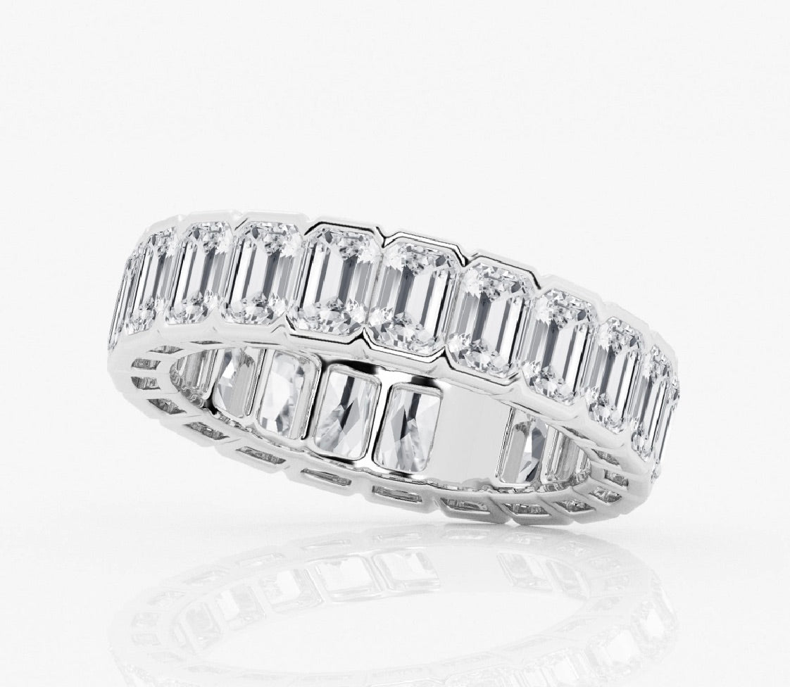 Emerald Cut Diamond Eternity Band Half Bezel 5.00 Carat