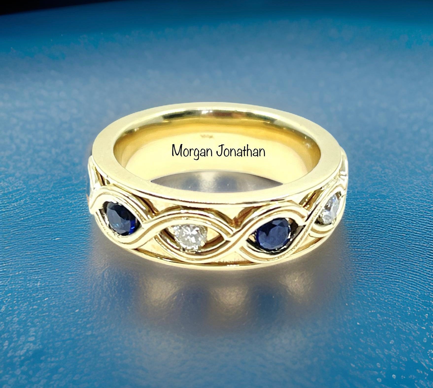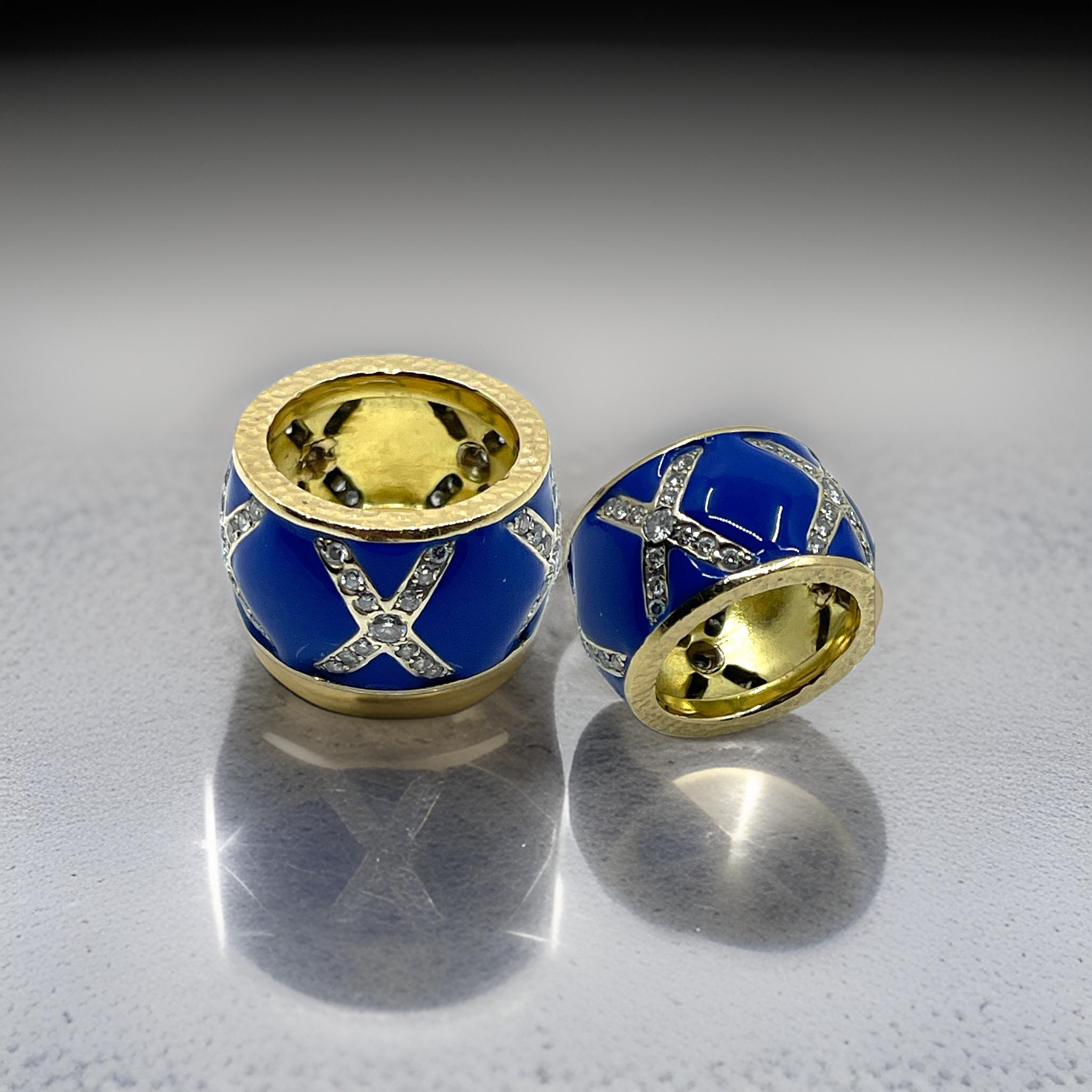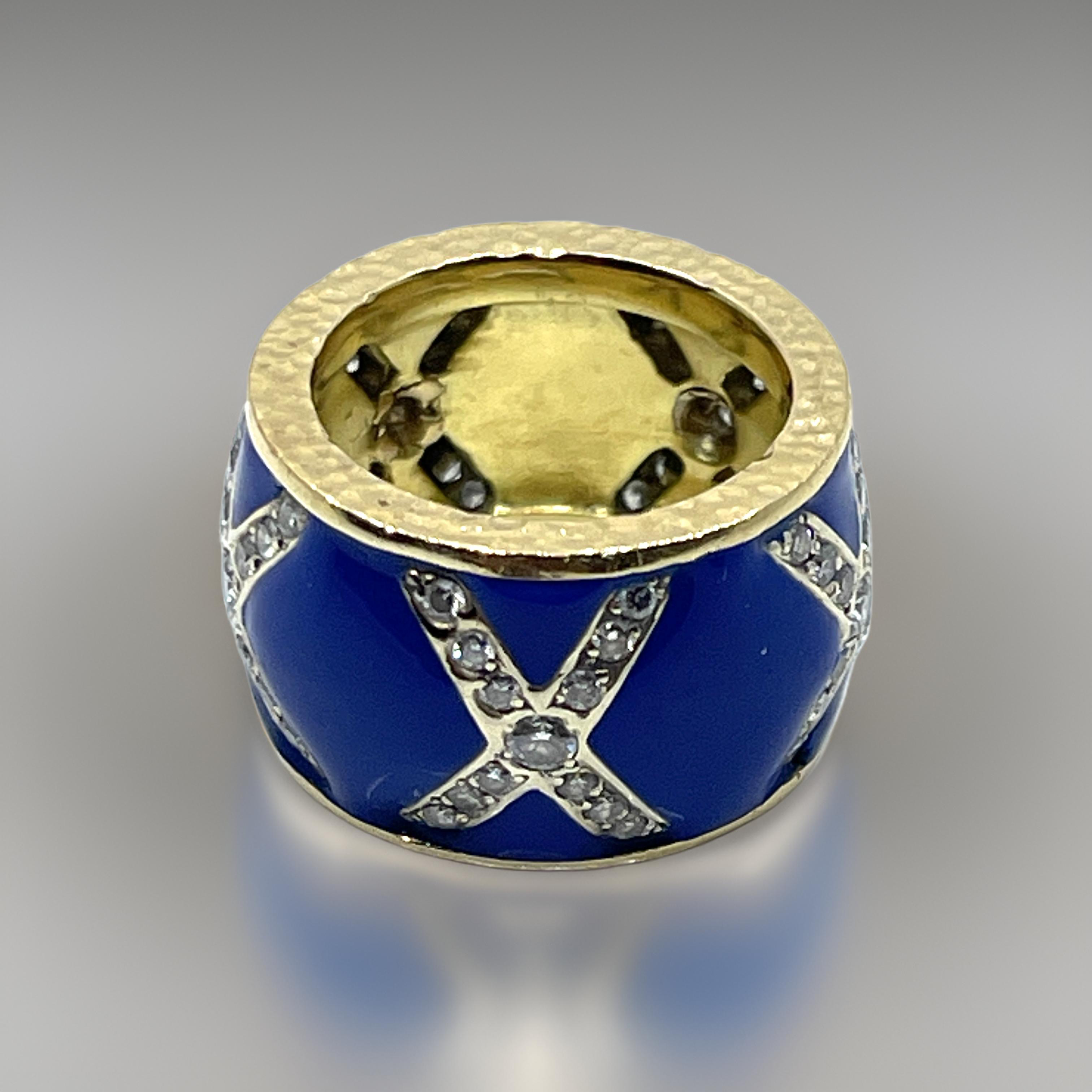 18KT CUSTOM GOLD DIAMOND X DESIGN ENAMEL WEDDING BAND