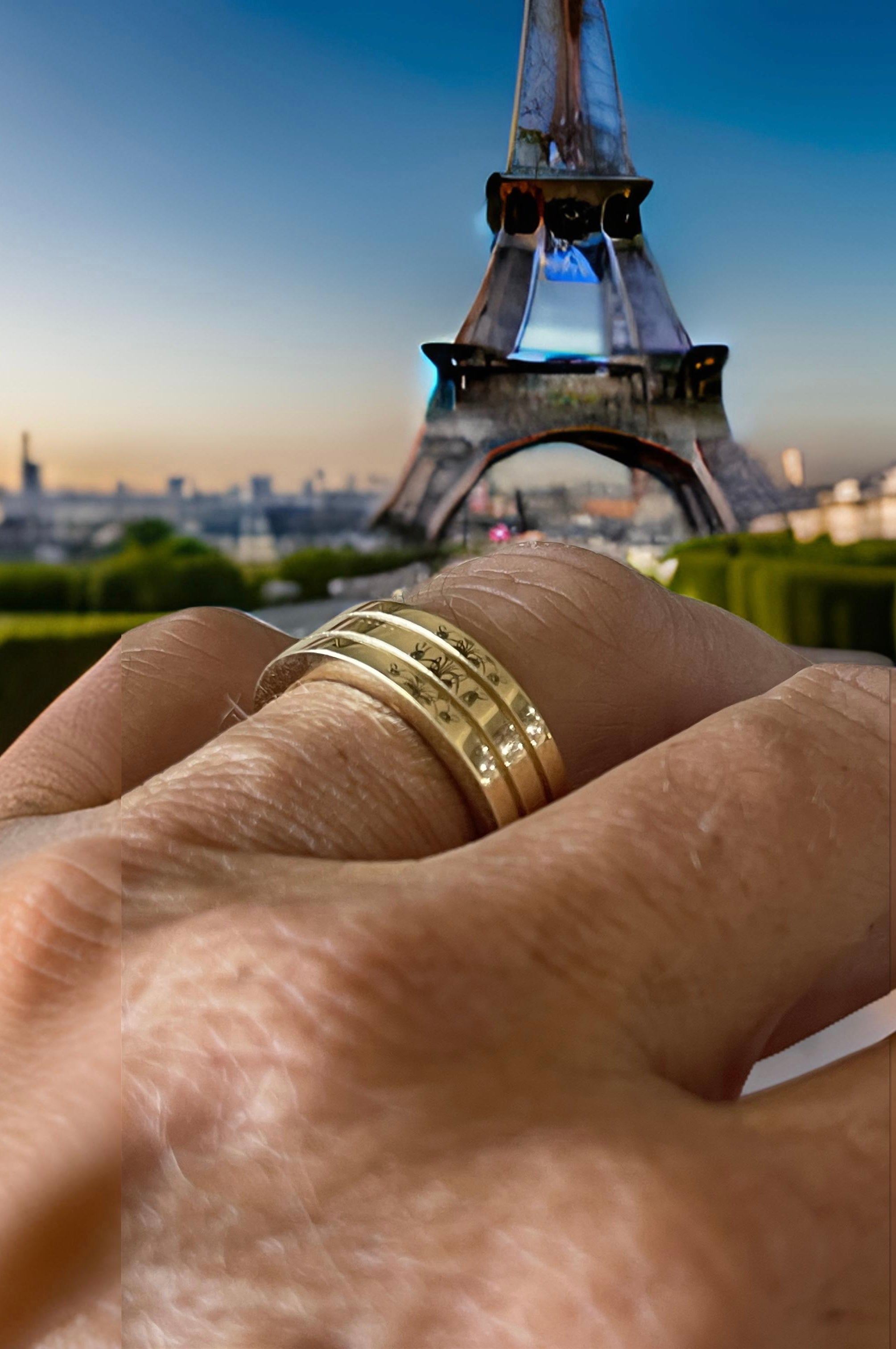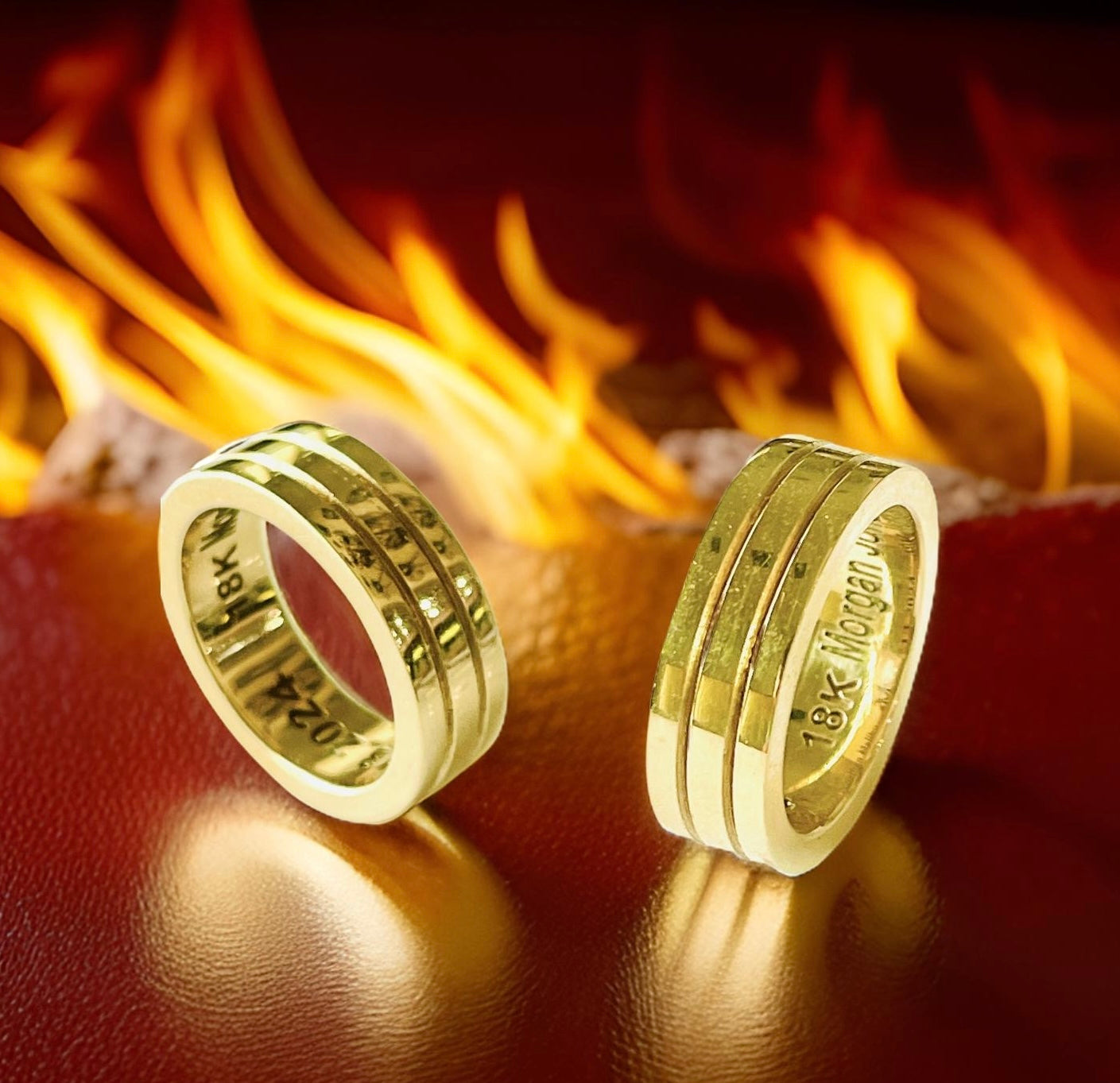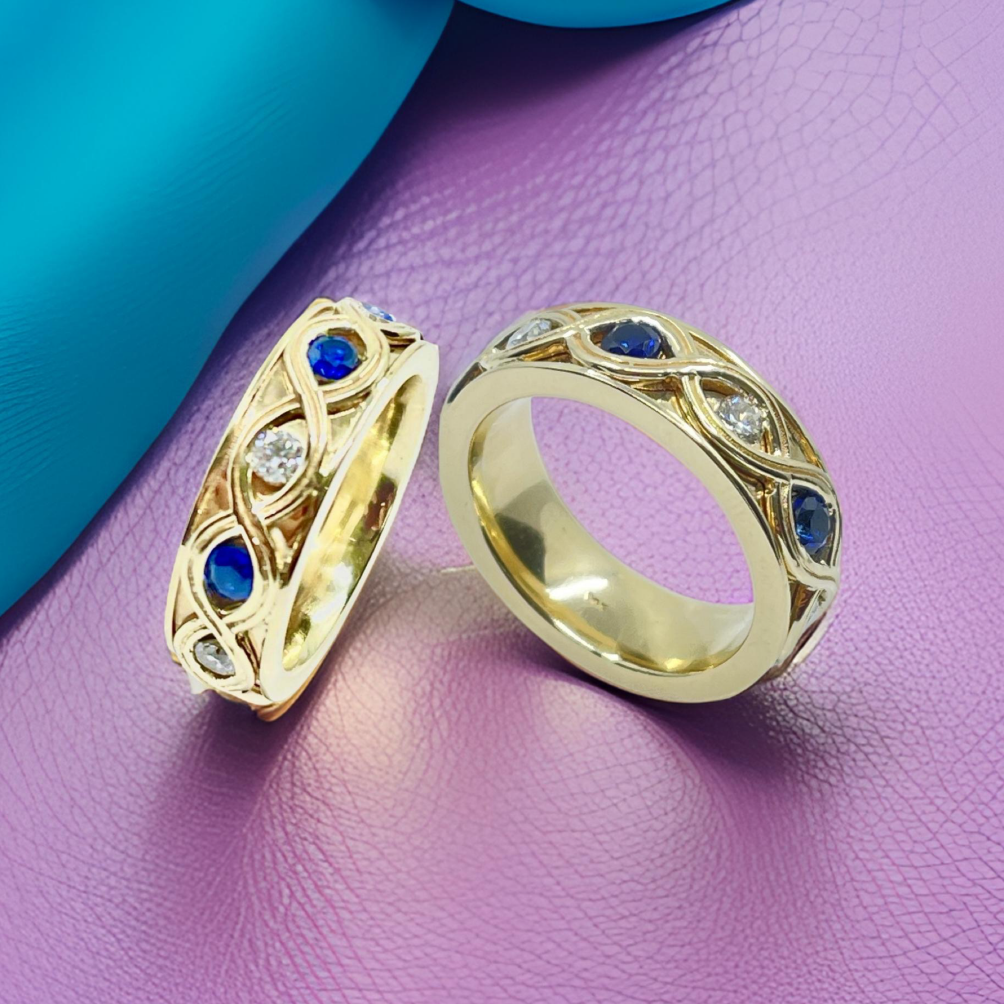 18KT CUSTOM GOLD DIAMOND X DESIGN ENAMEL WEDDING BAND