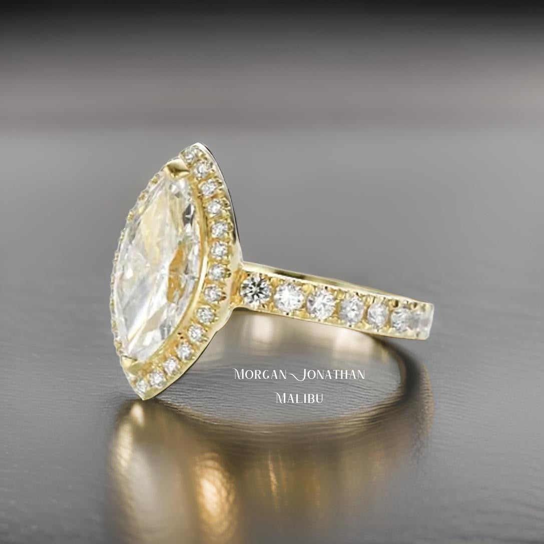 Marquise Diamond Ring Original Custom 18kt Yellow Gold 1.00 Carat Marquise Diamond 1.50 Carat round diamonds