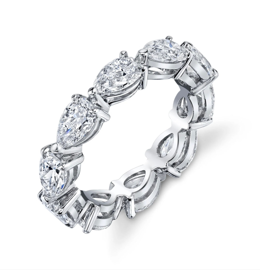 4.00 Carat Pear Shape Diamond Eternity Band. End To End. 18kt Gold or Platinum