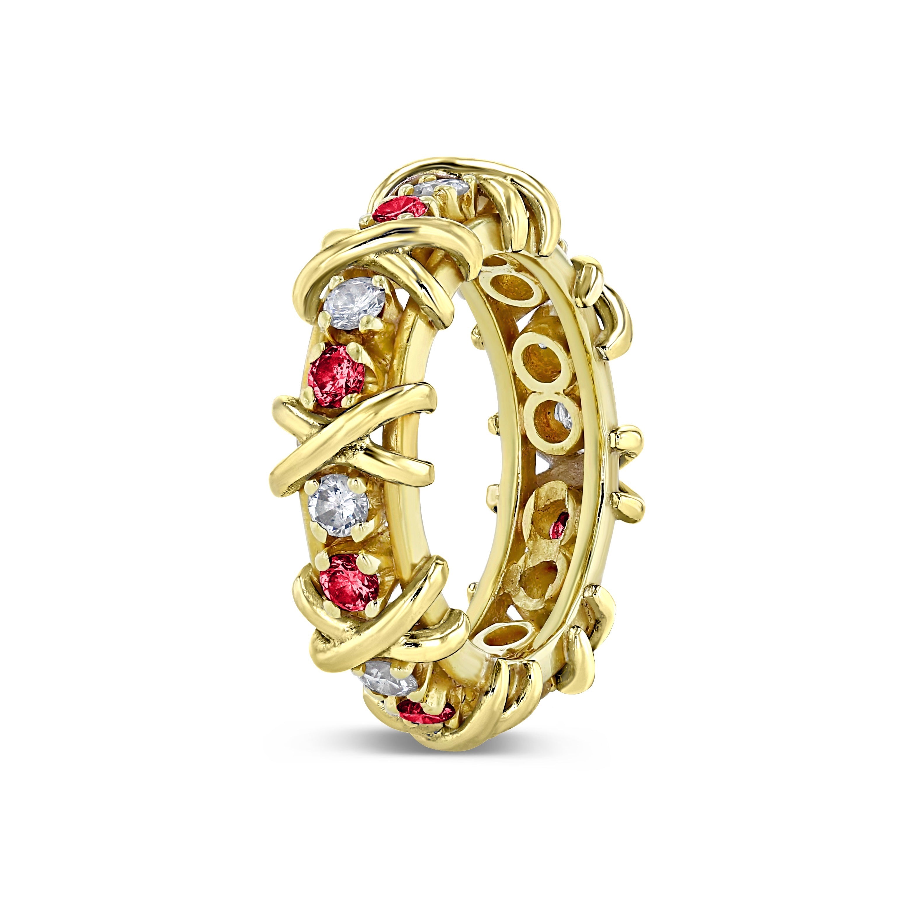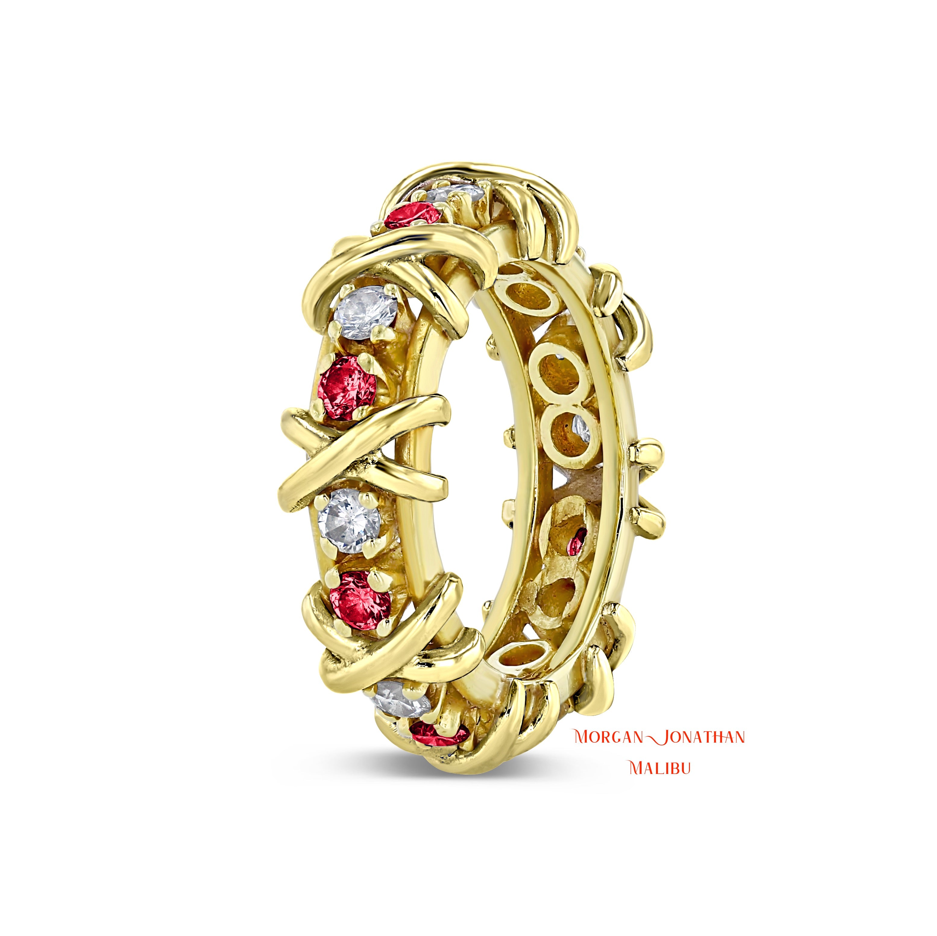 HUGS & KISSES "DIAMOND & RUBIES" X & O DESIGN ETERNITY BAND 18KT GOLD PLATINUM