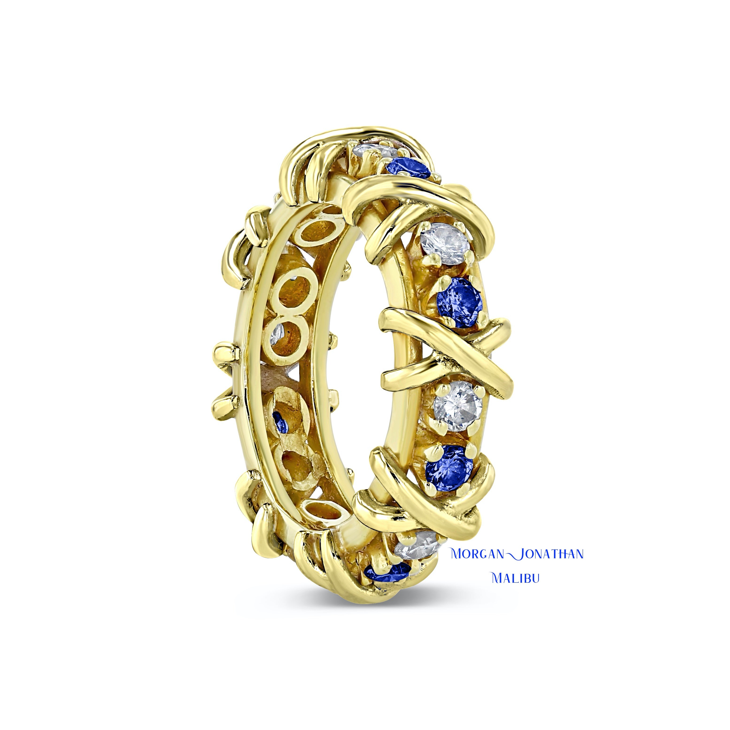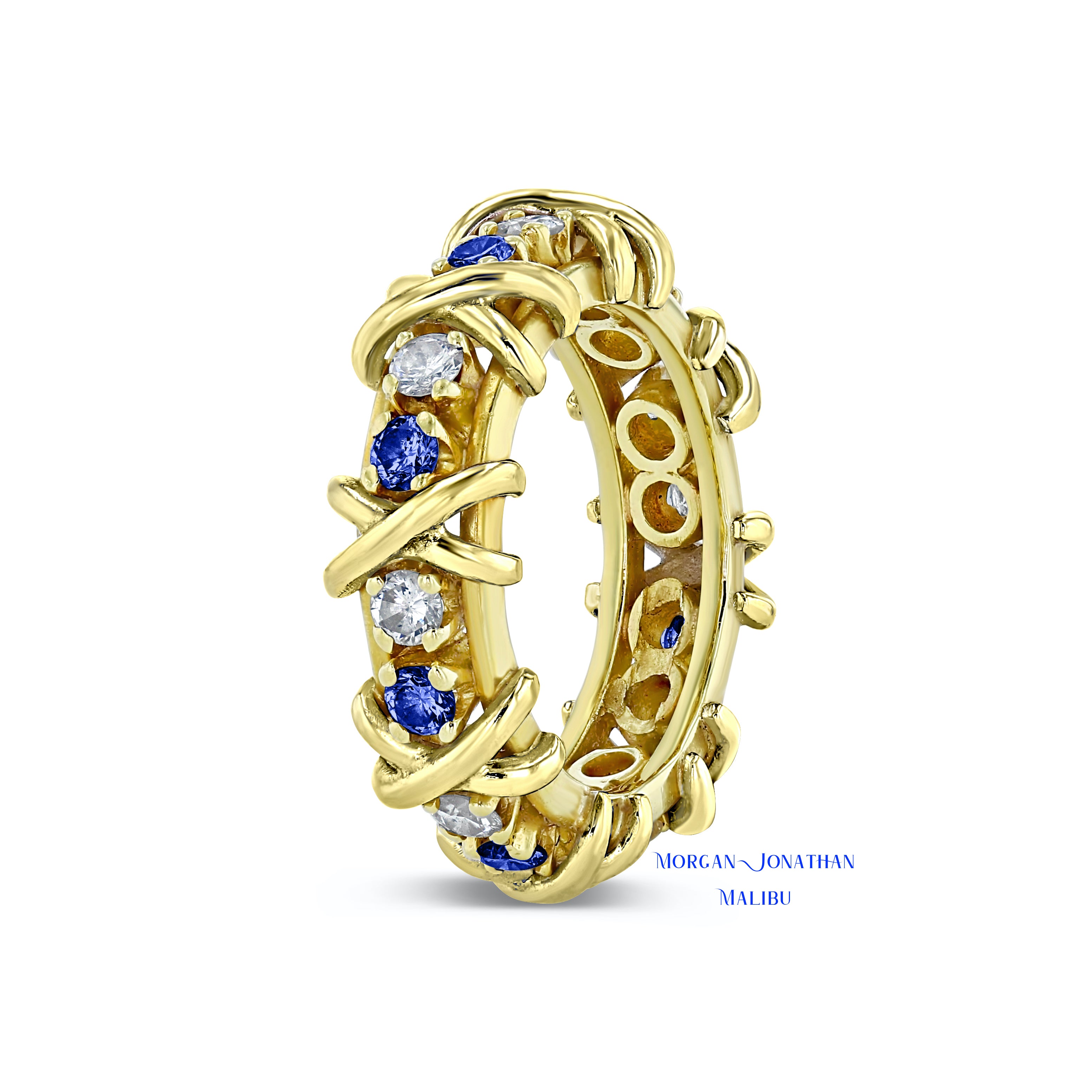 HUGS & KISSES "DIAMOND & BLUE SAPPHIRE" X & O DESIGN ETERNITY BAND
