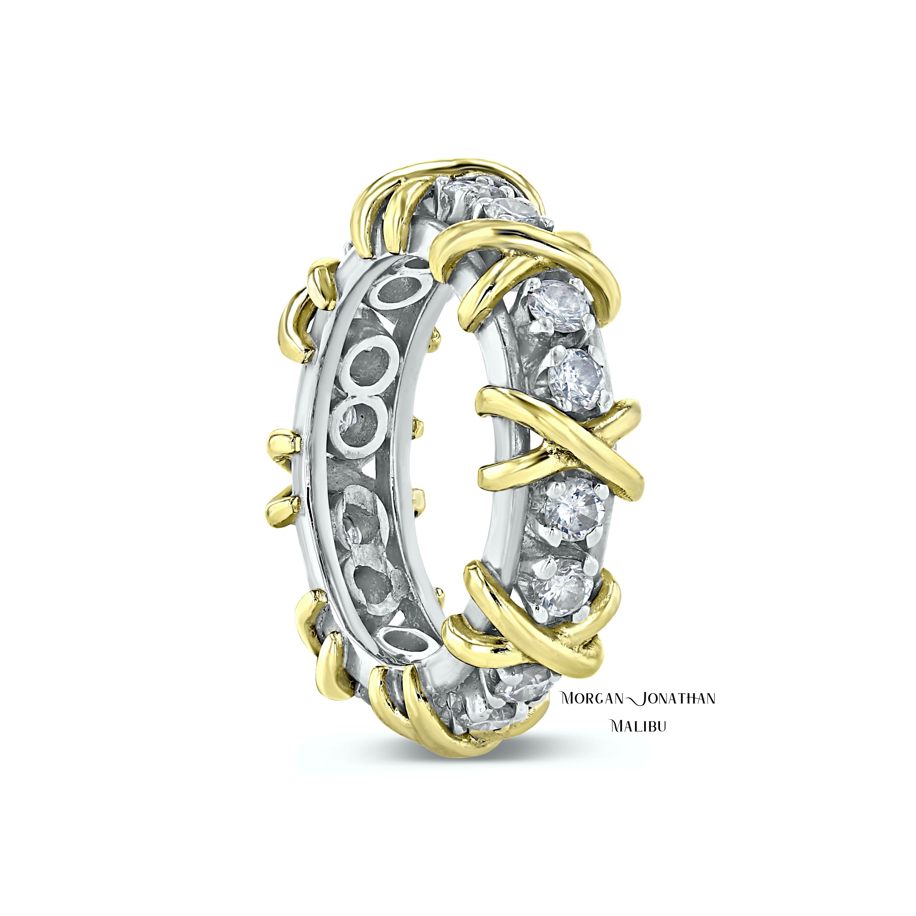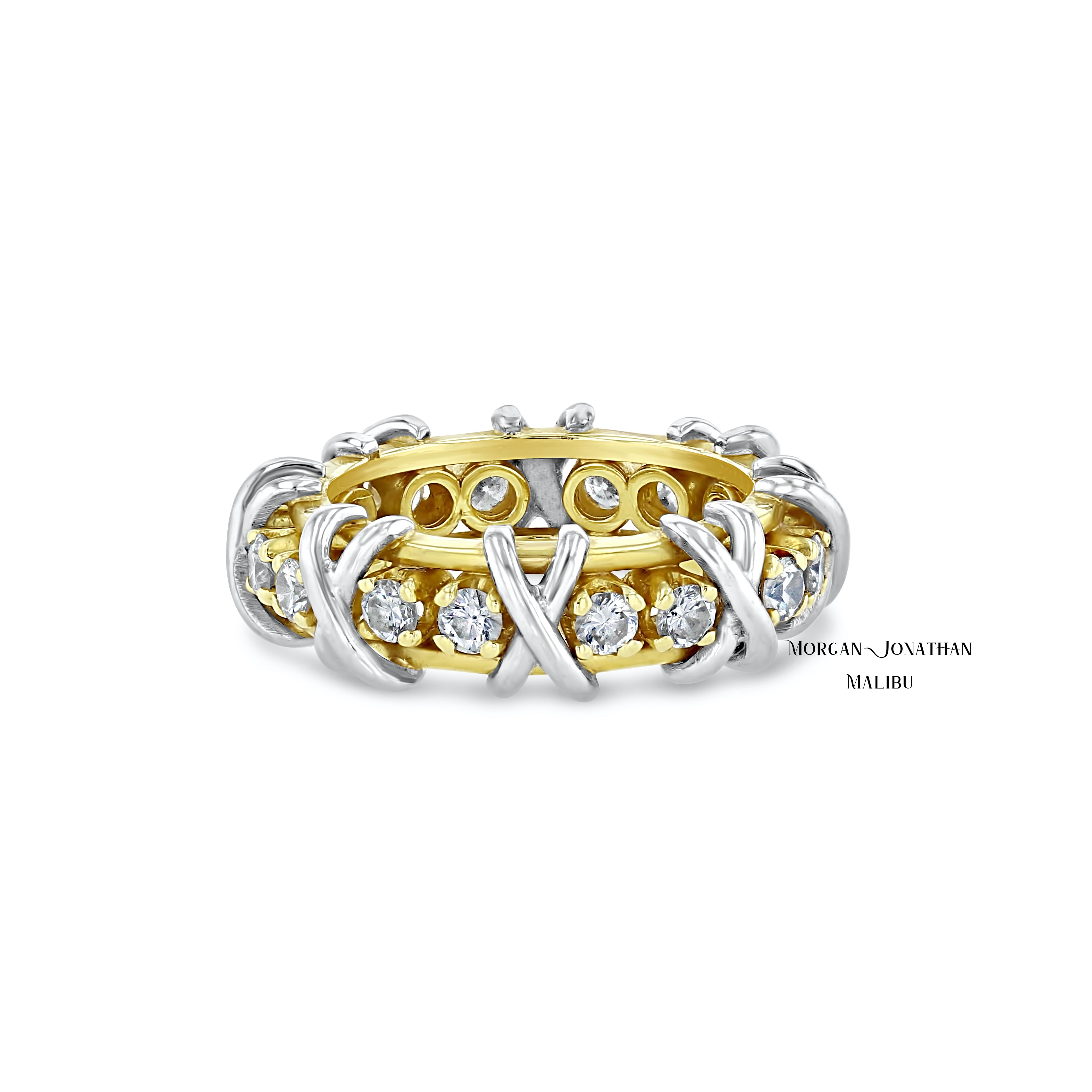 HUGS & KISSES "ALL DIAMONDS" X & 0 DESIGN TWO TONE GOLD PLATINUM COMBINATION ETERNITY BAND