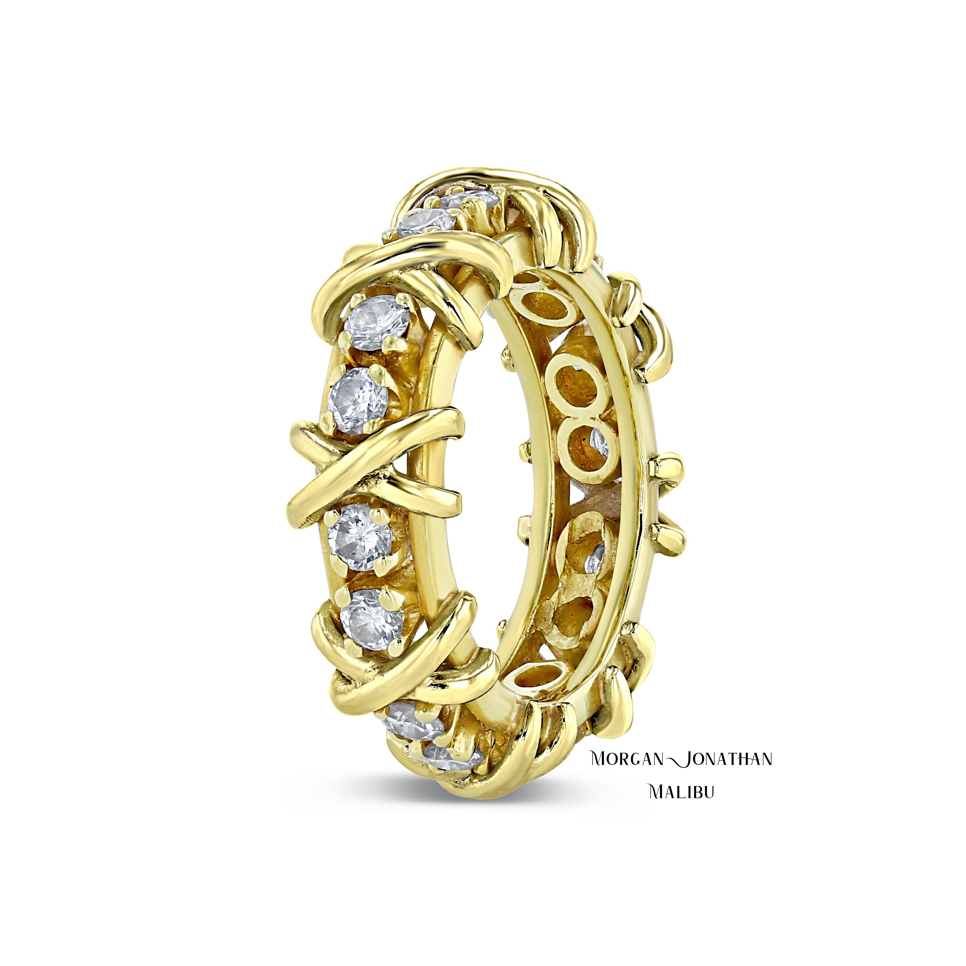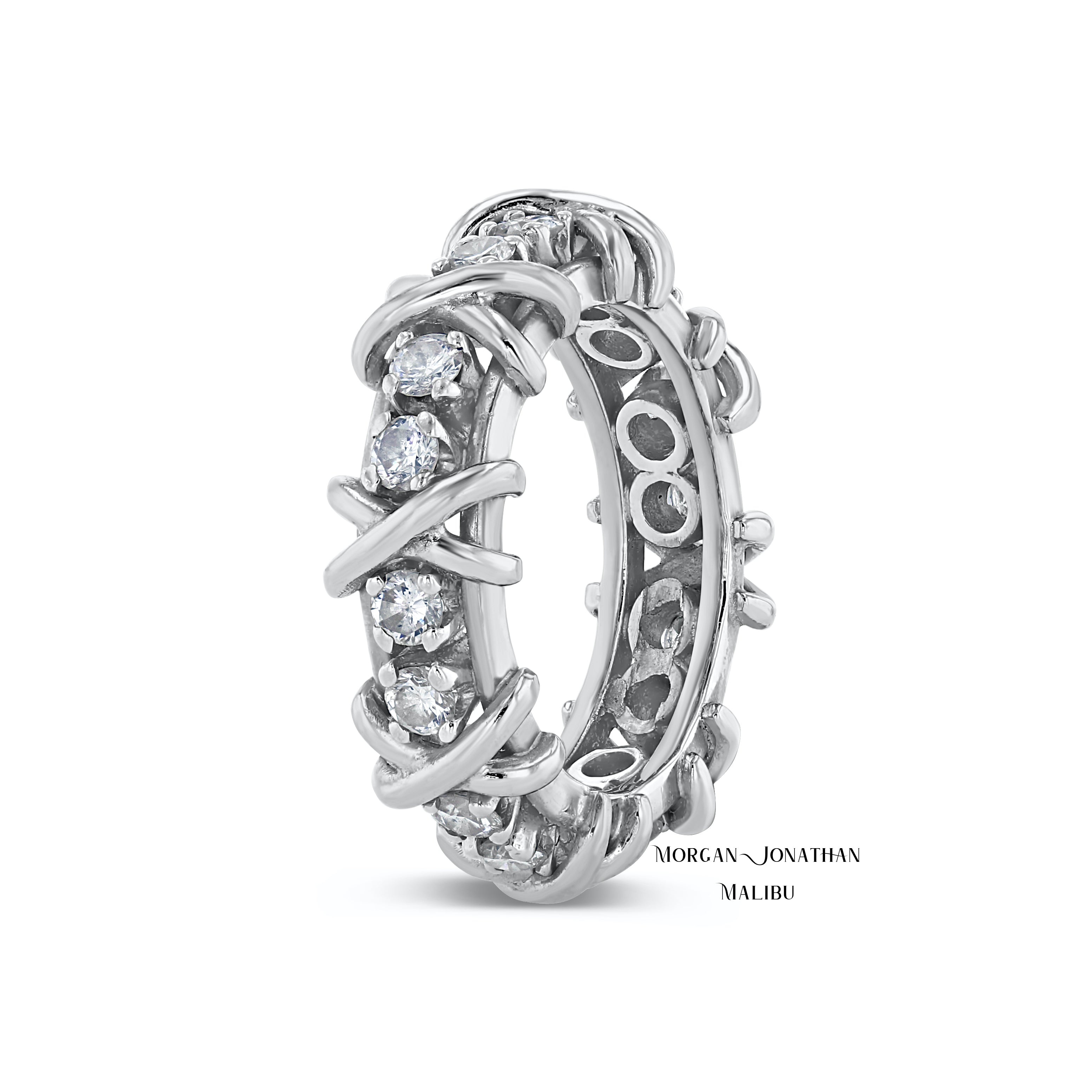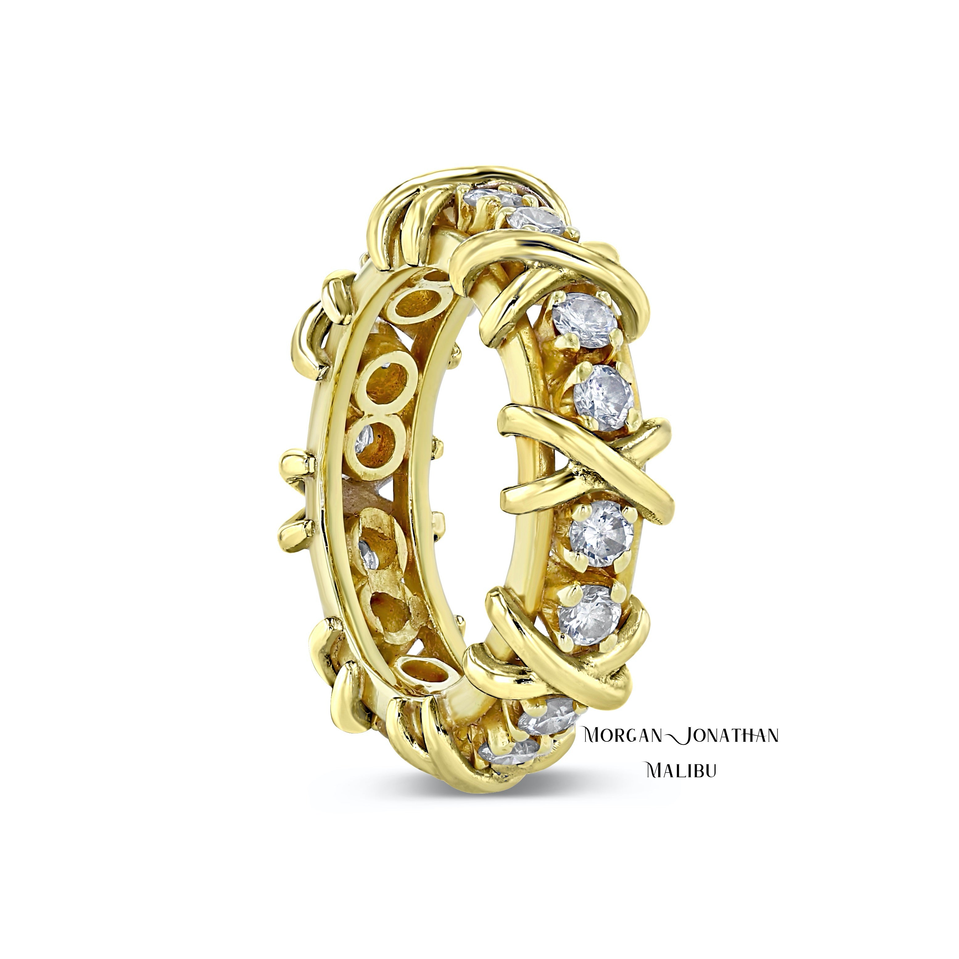 Custom Diamond Wedding Band Intertwined Infinity Braided Cord Ribbon Design. 18Kt Gold