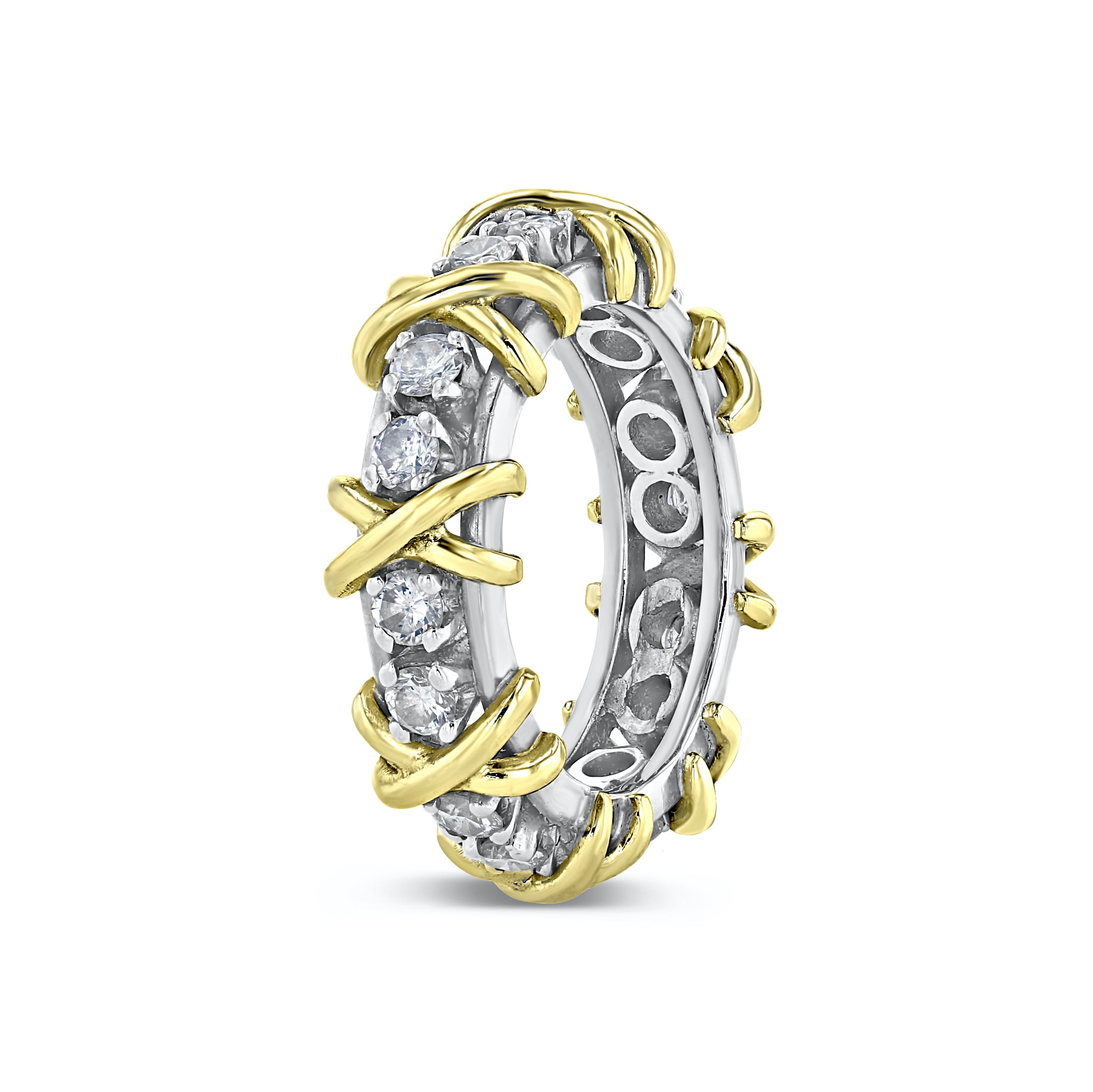 HUGS & KISSES "ALL DIAMONDS" X & 0 DESIGN TWO TONE GOLD PLATINUM COMBINATION ETERNITY BAND