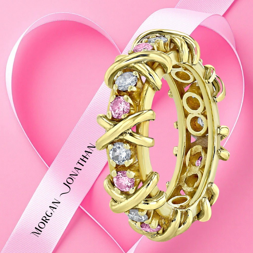 HUGS & KISSES "DIAMOND & PINK SAPPHIRES" X & O DESIGN ETERNITY BAND
