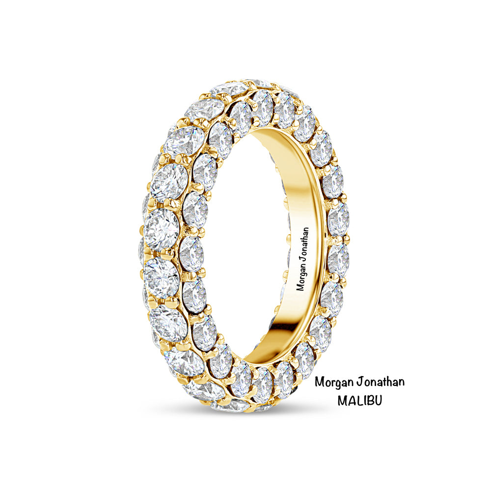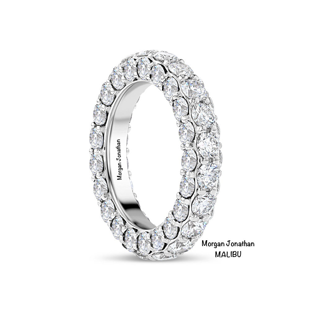 A THREE SIDED ETERNITY BAND OF ENDLESS DIAMONDS EMBRACED BY DIAMOND EDGES.