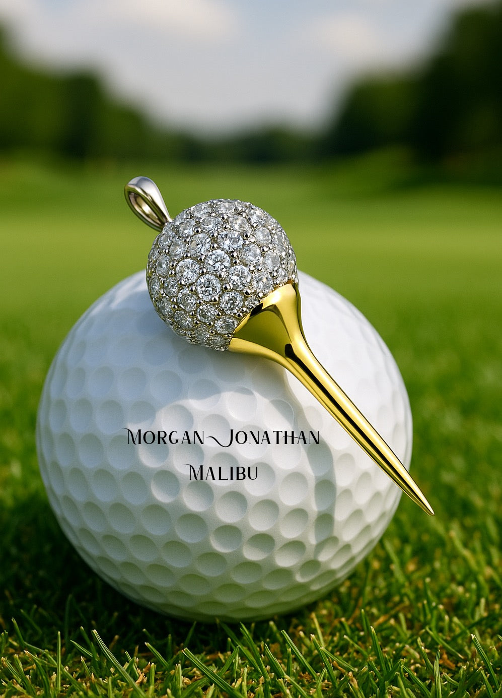Handcrafted in Solid 14kt Gold, This Impressive Size Pendant Pairs A Shimmering  Diamond Encrusted Golf Ball Sitting High Atop A Sleek Shiny Gold Tee, Suspended From A 14kt Gold Handmade Style Link Chain 18" Long.