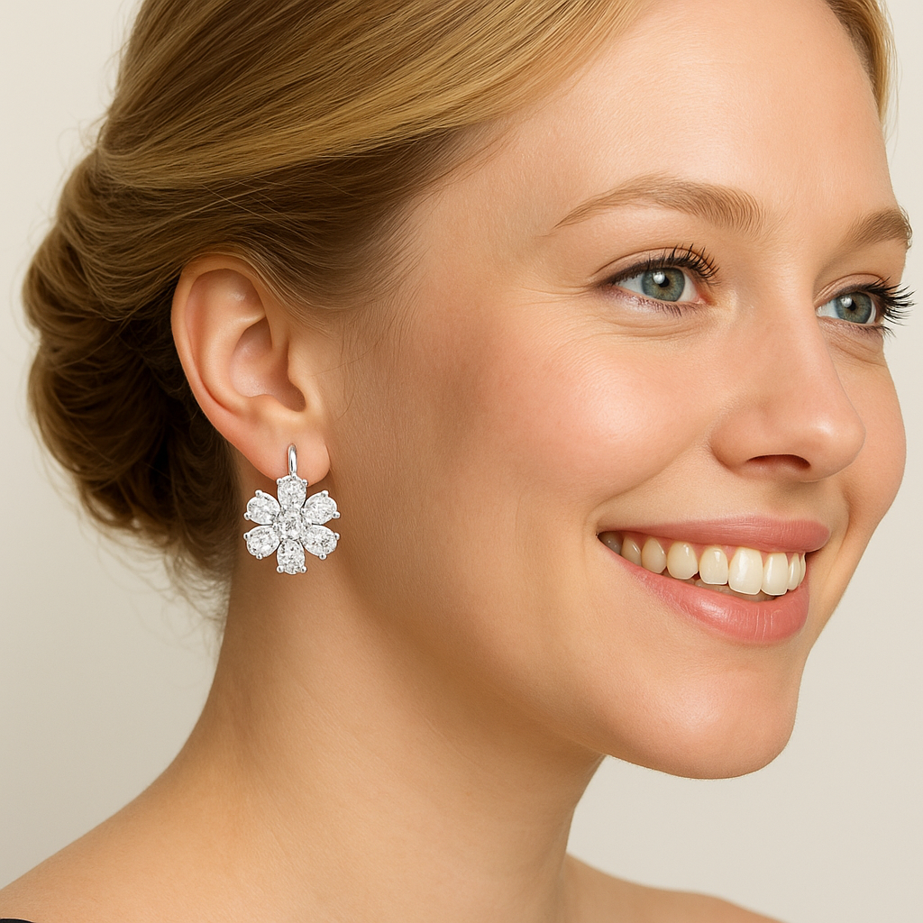 The BLOOM Classic Collection 2.50 Carat Flower Design Pear Shape Diamond Earring 18Kt Yellow White Gold