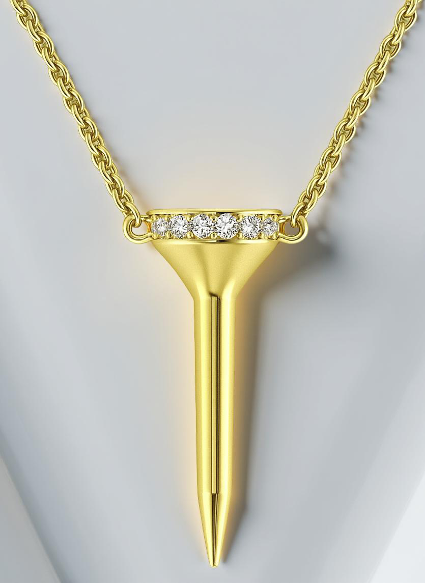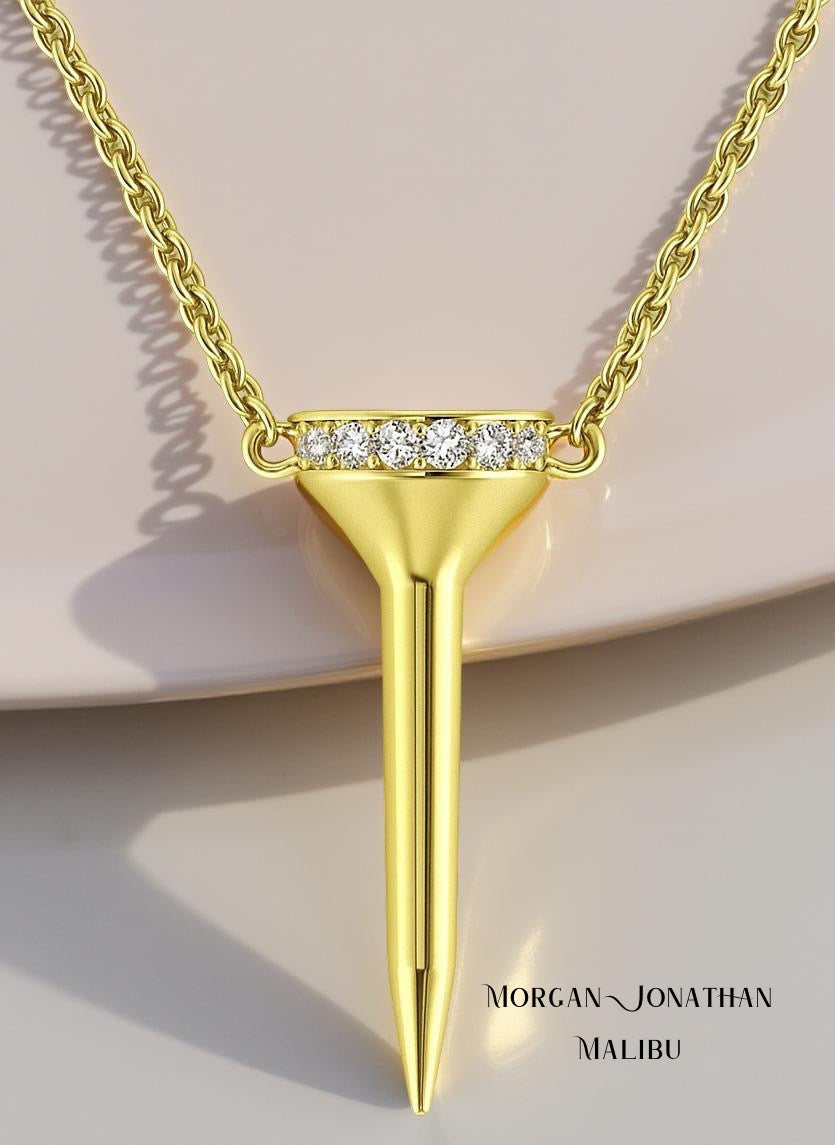 Diamond GOLF TEE Pendant Necklace 14Kt Gold. The Fairway Collection